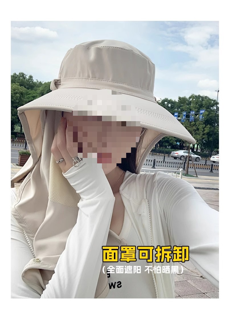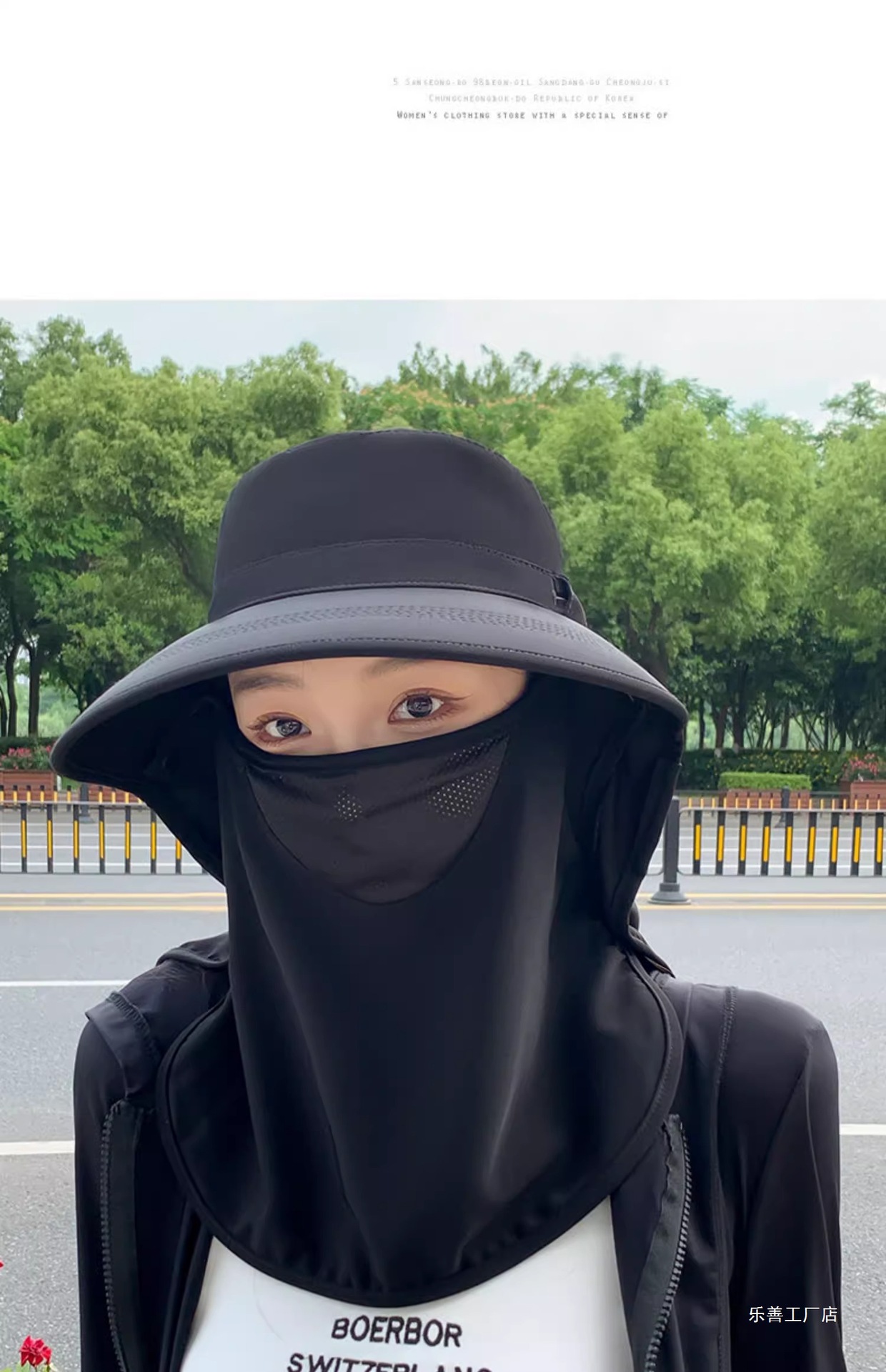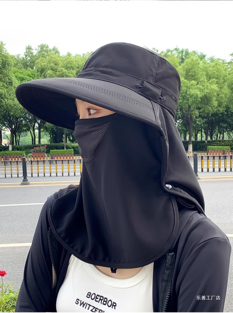 Leshan 자외선 차단 모자, 통기성 얼굴 마스크, 목 보호, 일체형 태양 모자, 자외선 방지 야외 태양 모자