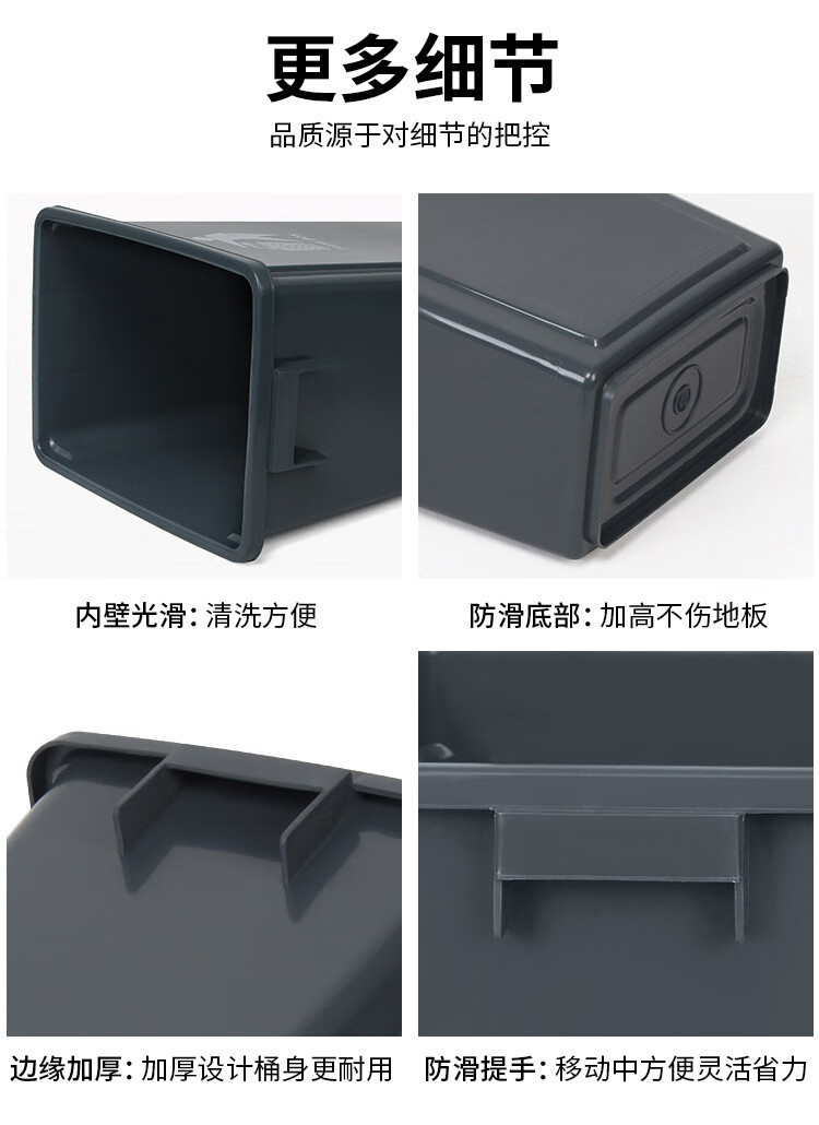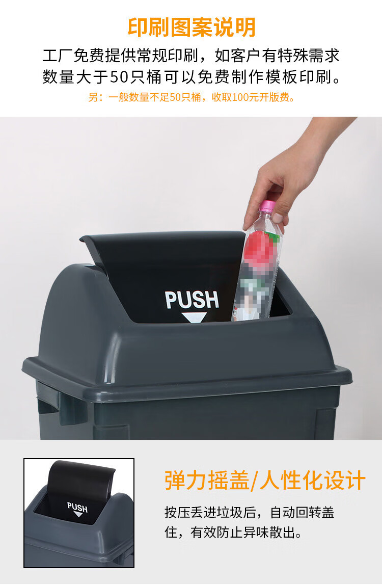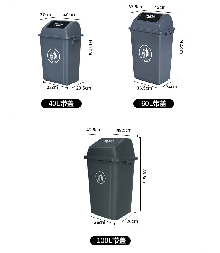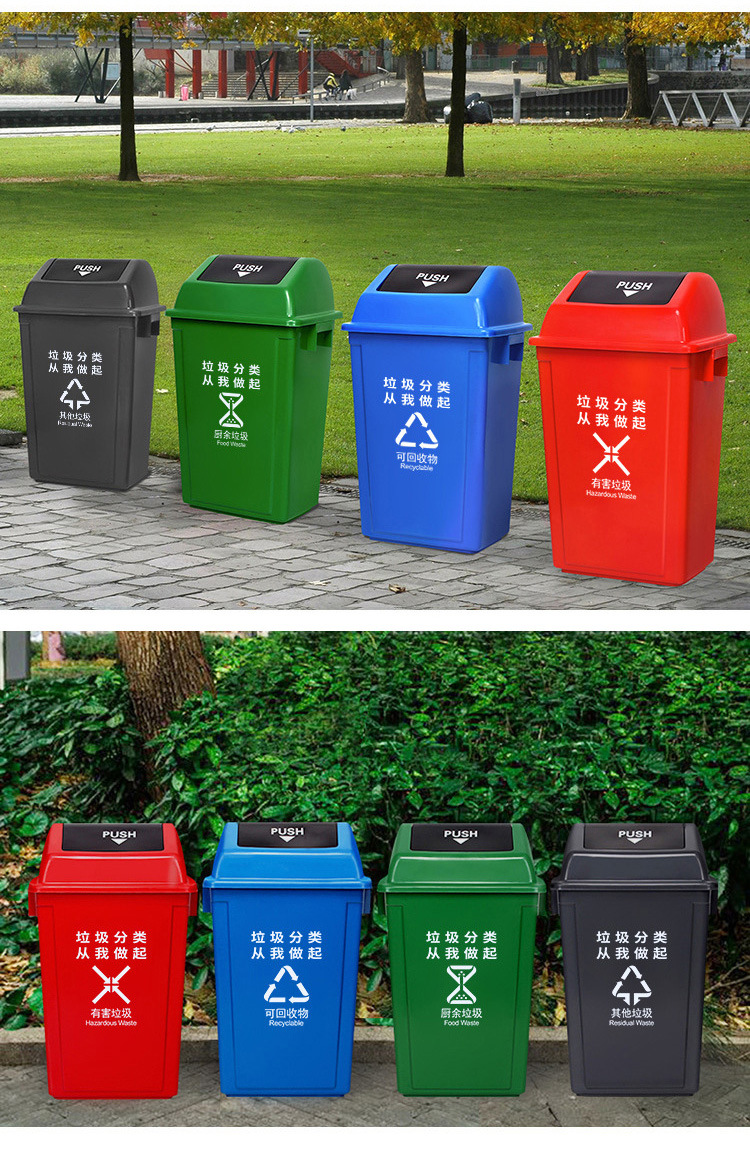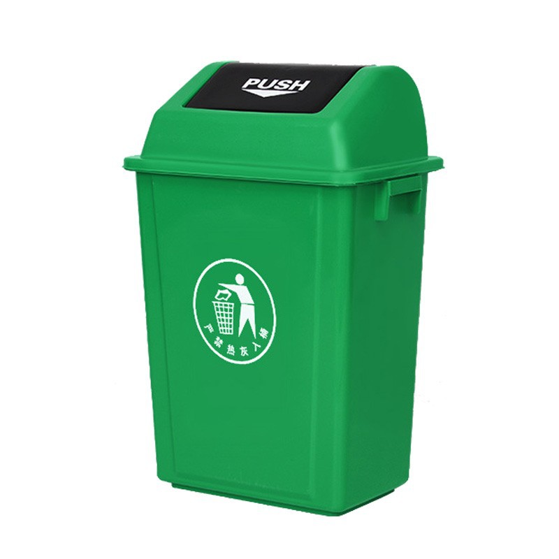 VLEN 사각 플라스틱 쓰레기통 녹색 스윙 뚜껑 40L 야외 분류 쓰레기통 주방 학교 위생 벨트