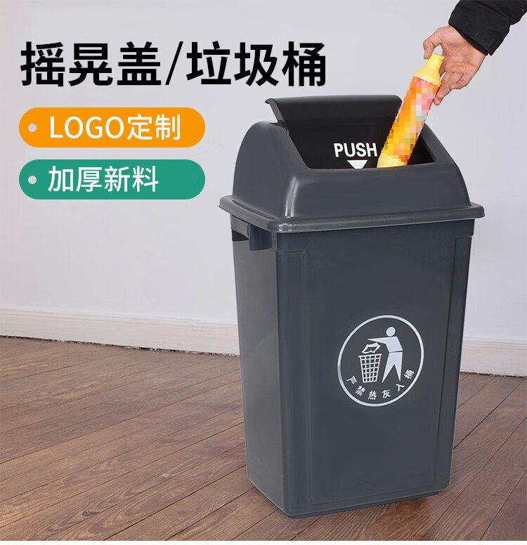 VLEN 사각 플라스틱 쓰레기통 녹색 스윙 뚜껑 40L 야외 분류 쓰레기통 주방 학교 위생 벨트스토어 가기