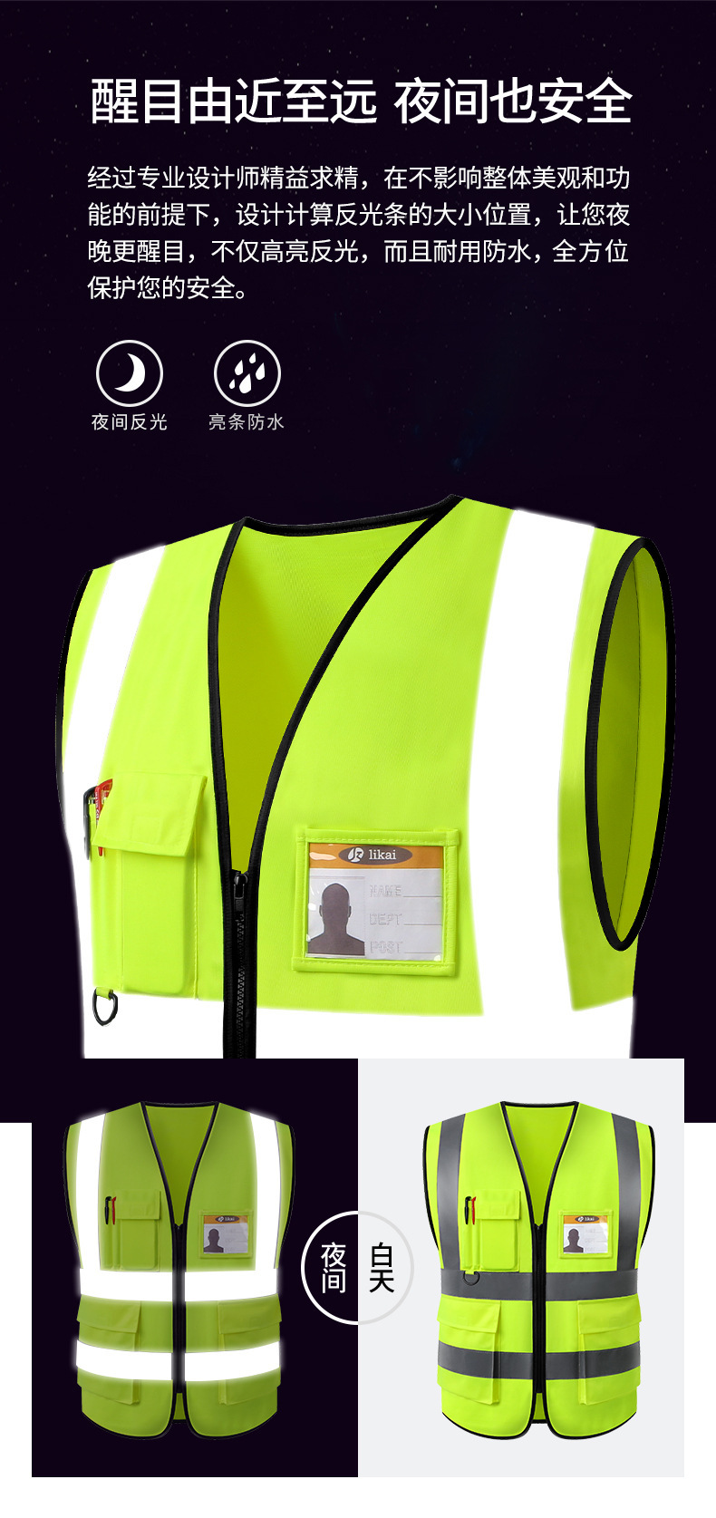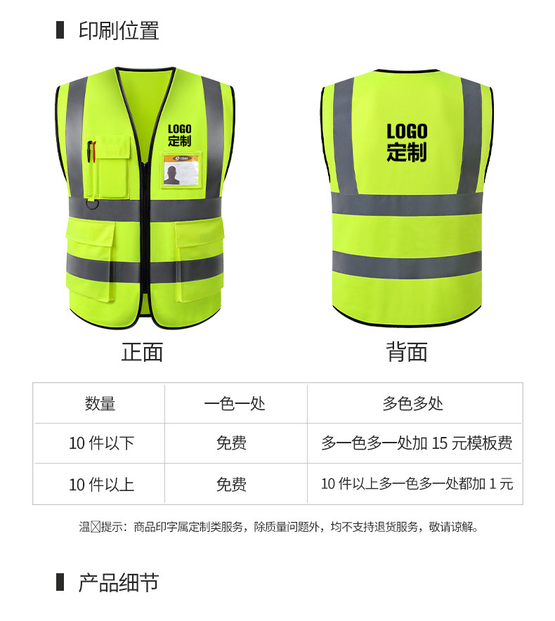 맞춤형 반사 조끼, 건설 조끼, 멀티 포켓, 교통 안전 보호, 정원 위생 건설 현장 반사 의류 가공