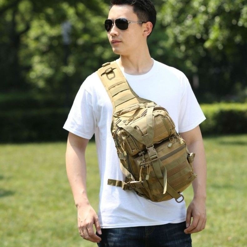 Q4C 야외 레저 여행 어깨 크로스 바디 배낭 등산 사이클링 스포츠 다기능 전술 가슴 가방 iPad 통
