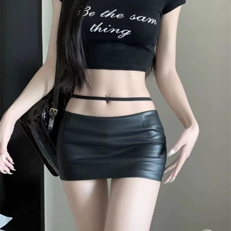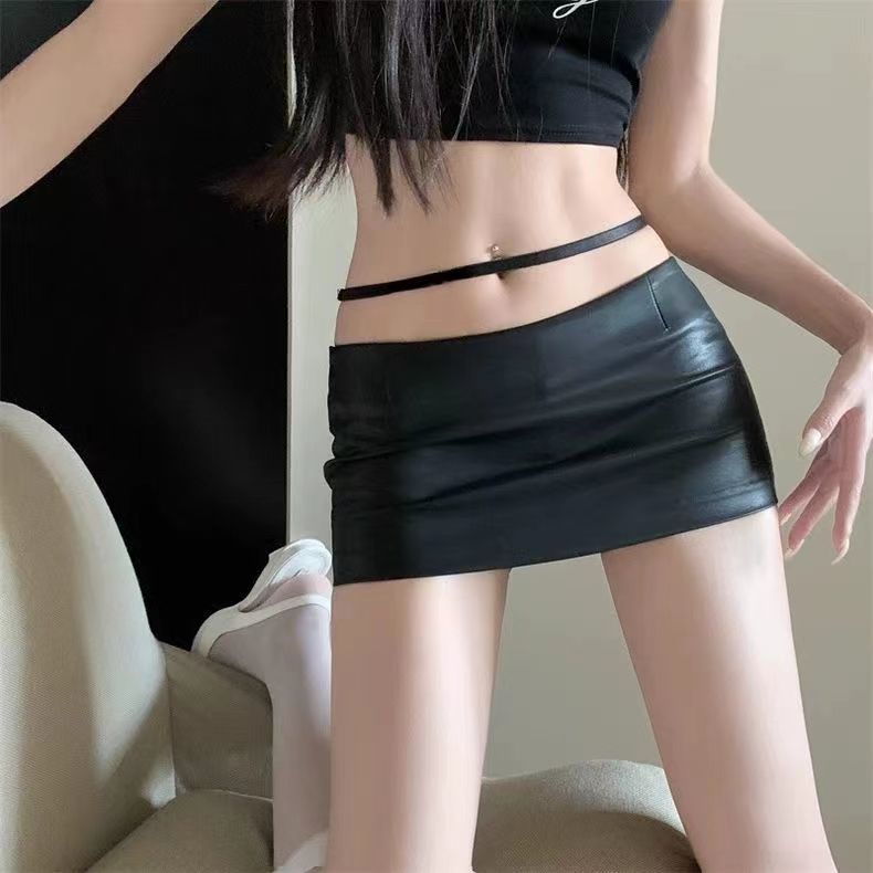 핫걸 로우 웨이스트 힙 PU 소형 가죽 스커트 여성 가을 스커트 섹시 타이트 다용도 스커트 노출 방지 미니 스커트