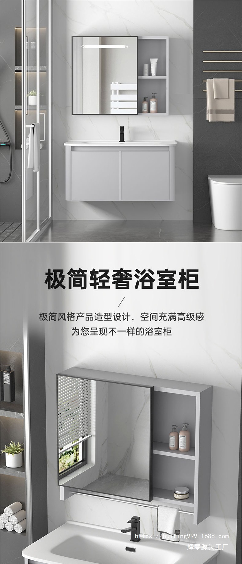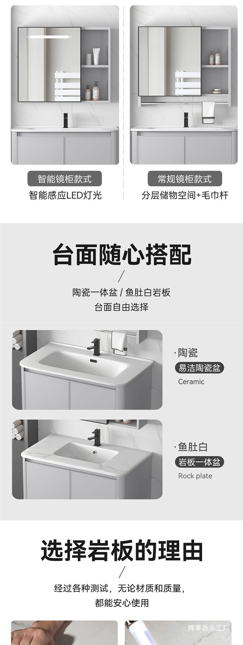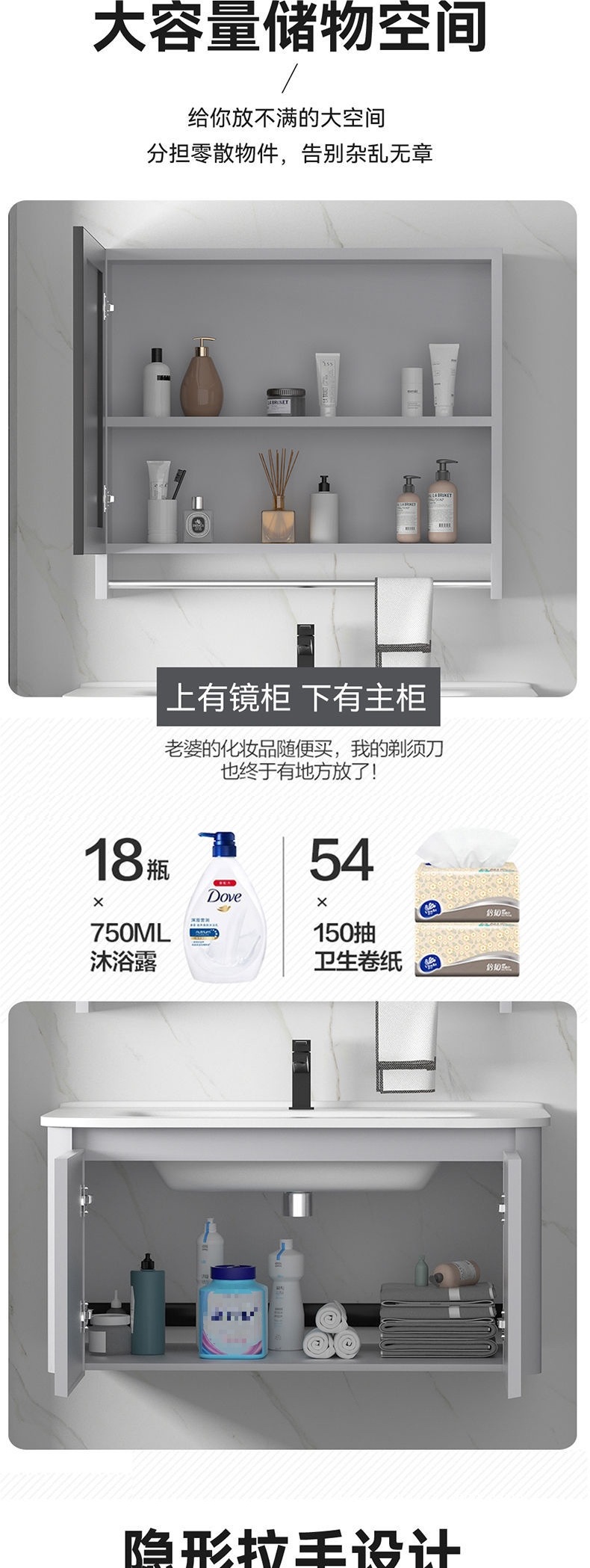 • 모서리가 둥근 메인 캐비닛 + 모서리가 둥근 세라믹 세면대 + 센서 조명 거울 캐비닛_라이트 그레이 둥근 모서리 80CM
