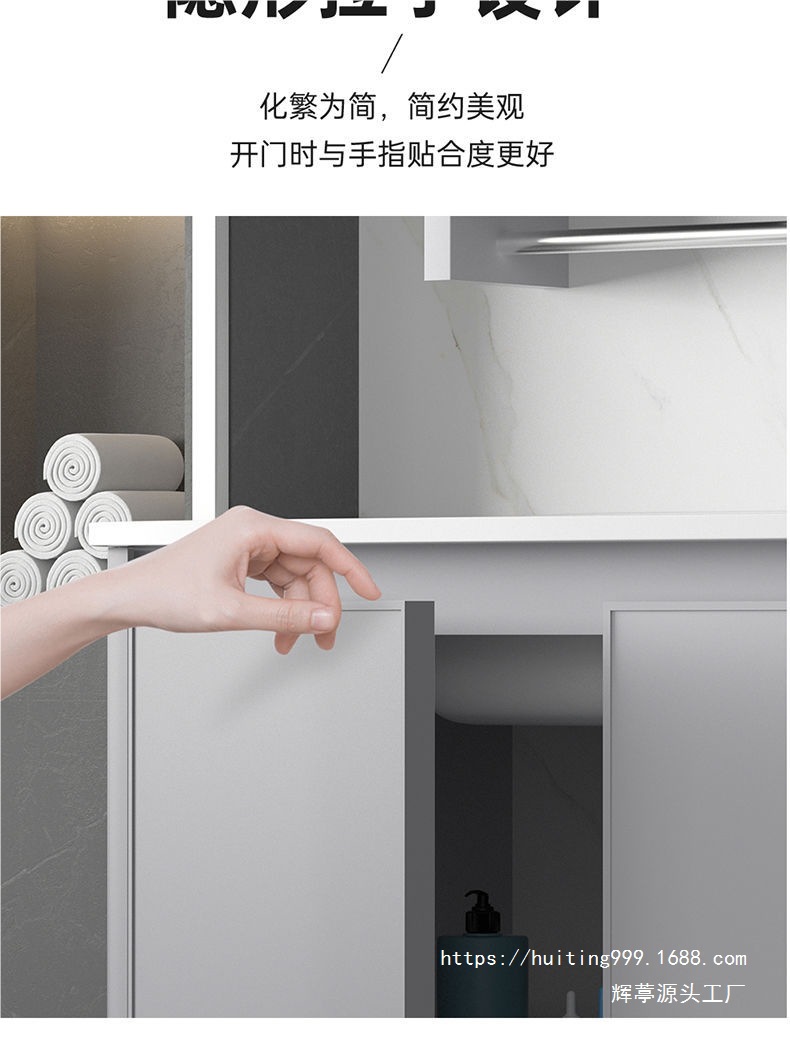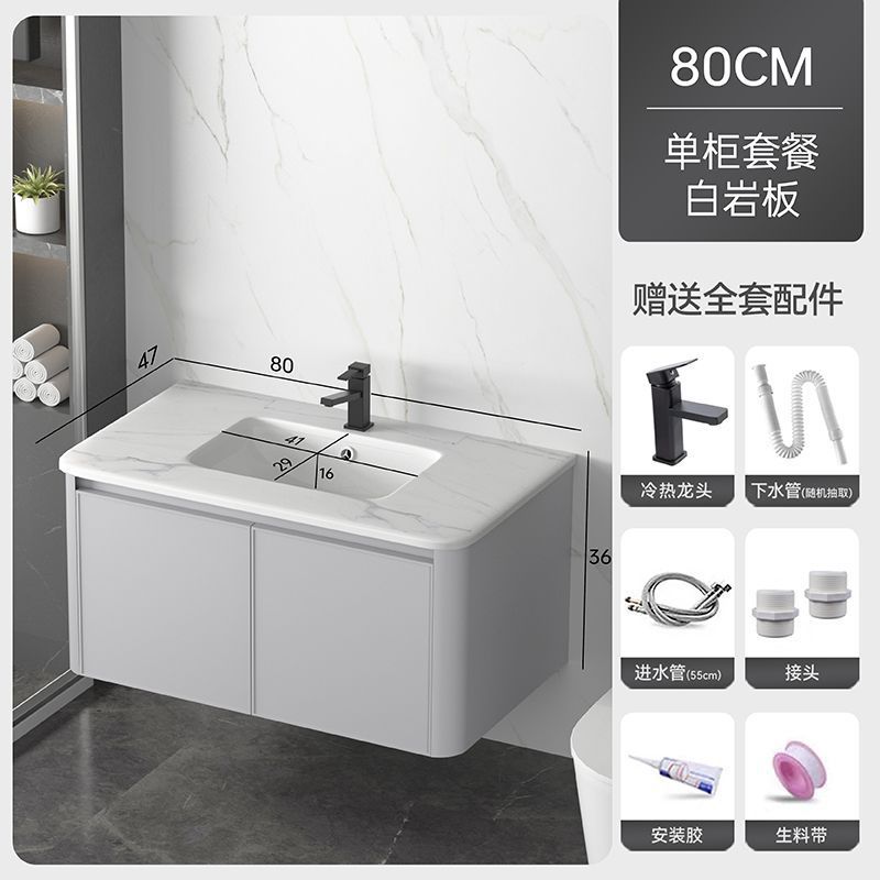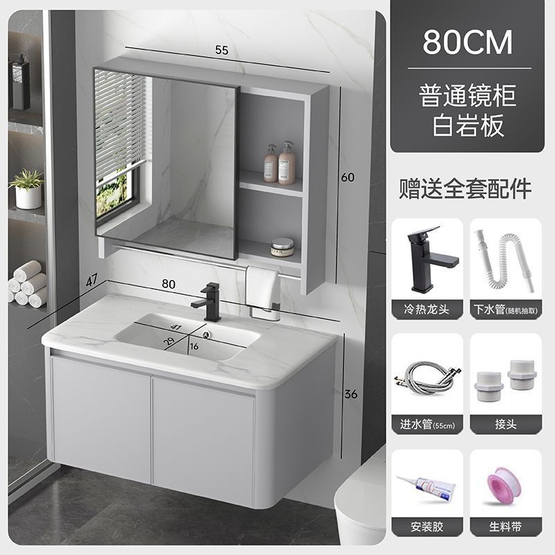 • 모서리가 둥근 메인 캐비닛 + 모서리가 둥근 슬레이트 세면대 + 일반 거울 캐비닛_밝은 회색 모서리가 둥근 80CM