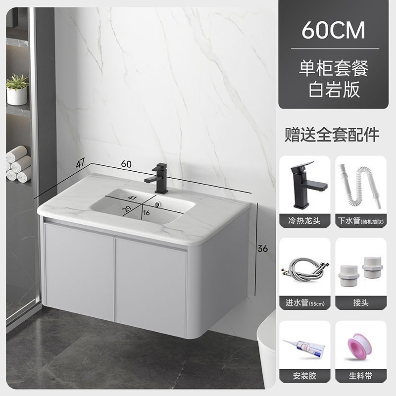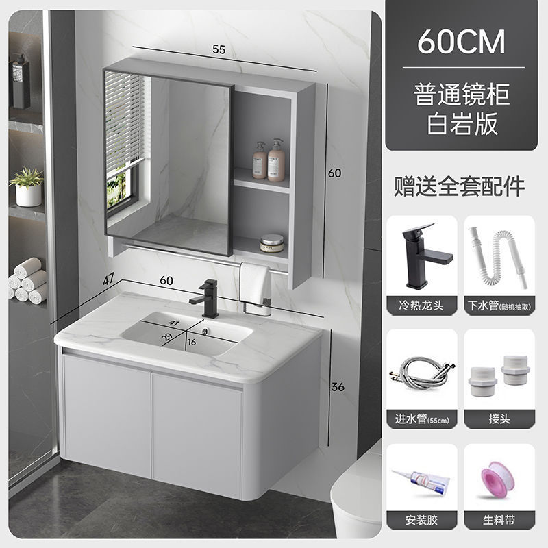 • 모서리가 둥근 메인 캐비닛 + 모서리가 둥근 슬레이트 세면대 + 일반 거울 캐비닛_밝은 회색 모서리가 둥근 60CM