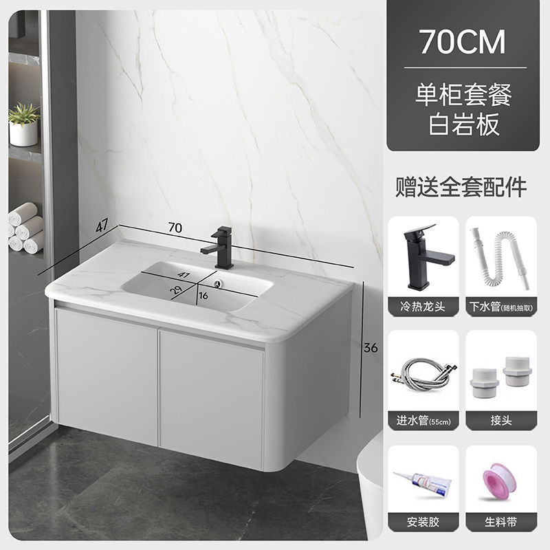 • 모서리가 둥근 메인 캐비닛 + 모서리가 둥근 슬레이트 세면대 + 센서 조명 거울 캐비닛_밝은 회색 둥근 모서리 70CM
