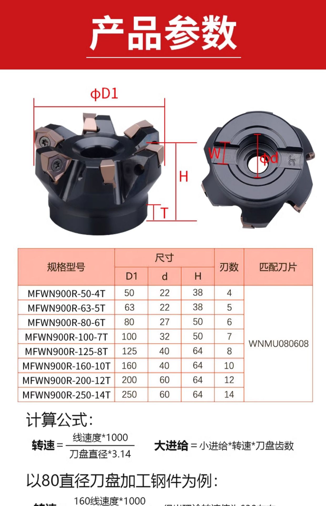 90도 양면 육각형 WNMU0808 블레이드 중절삭 고속 피드 오픈 거친 직각 평면 MFWN 밀링 커터 디스크