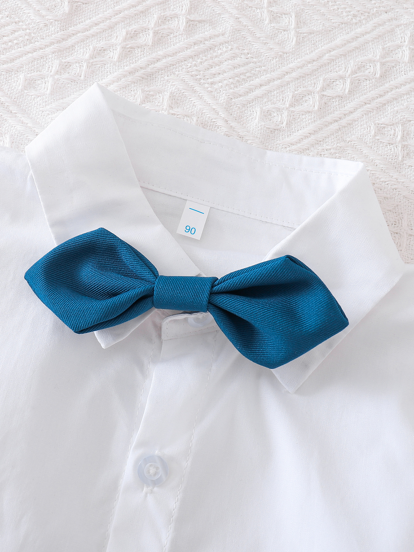 봄과 가을 소년 흰색 긴팔 셔츠 파란색 조끼 바지 나비 넥타이 신사 우아한 드레스 정장 결혼식