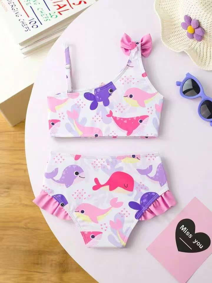 2025 새로운 한국어 스타일 어린이 소녀 수영복 스플릿 오션 만화 아기 소녀 여름 수영복 귀여운 크로스 보더스토어 가기