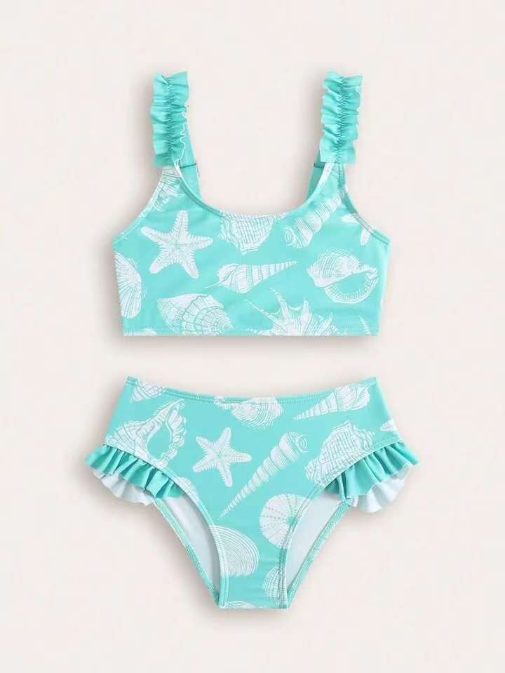 2025 새로운 한국어 스타일 어린이 소녀 수영복 스플릿 오션 만화 아기 소녀 여름 수영복 귀여운 크로스 보더