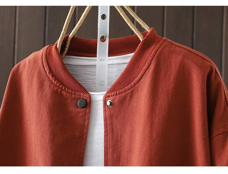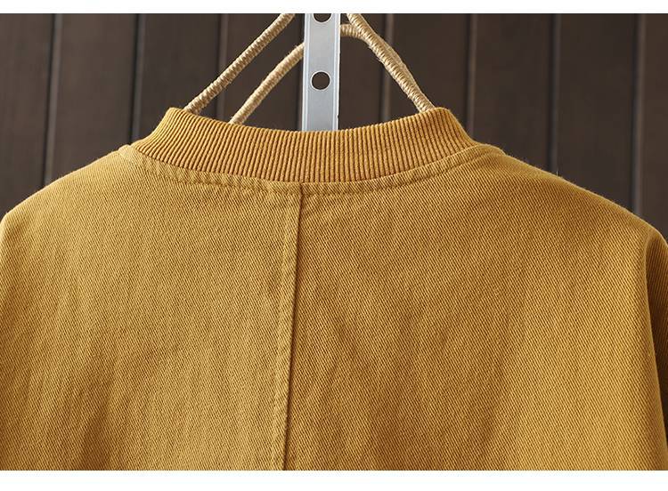 여성용 레트로 작업복 야구 재킷, 루즈하고 슬림한 봄, 가을 대형 면 스탠드 칼라 더블 포켓 아우터 재킷스토어 가기