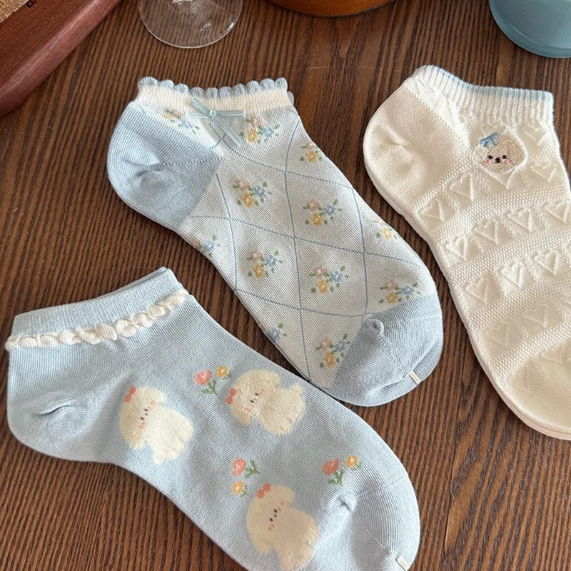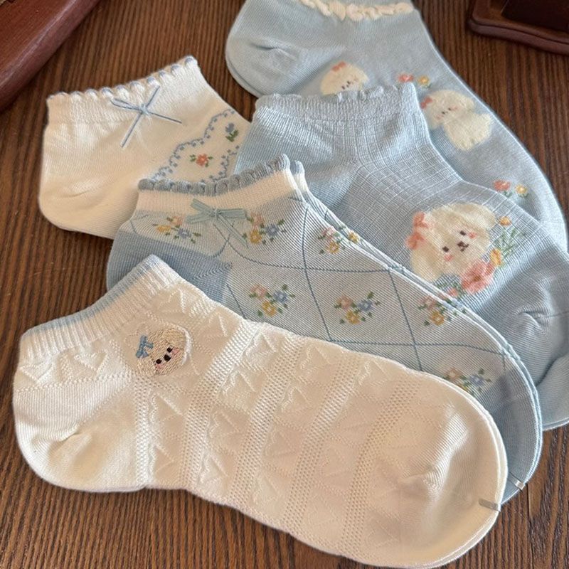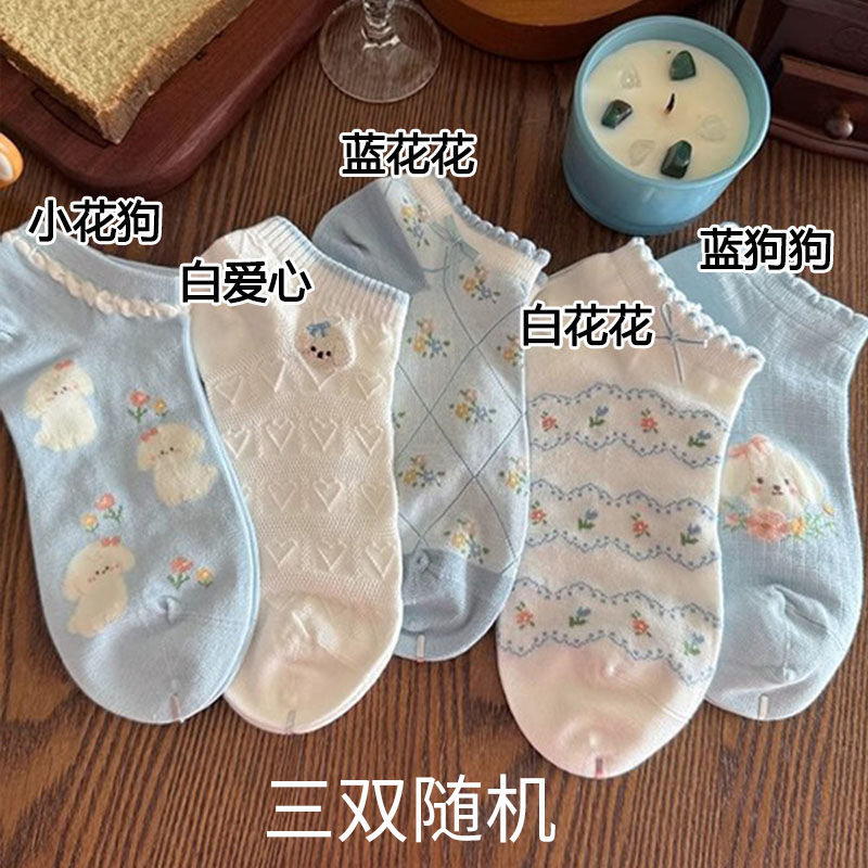 여름 얇은 여성 양말 봄과 여름 메쉬 통기성 만화 강아지 활 일본 소녀 여름 얕은 입 짧은 양말스토어 가기