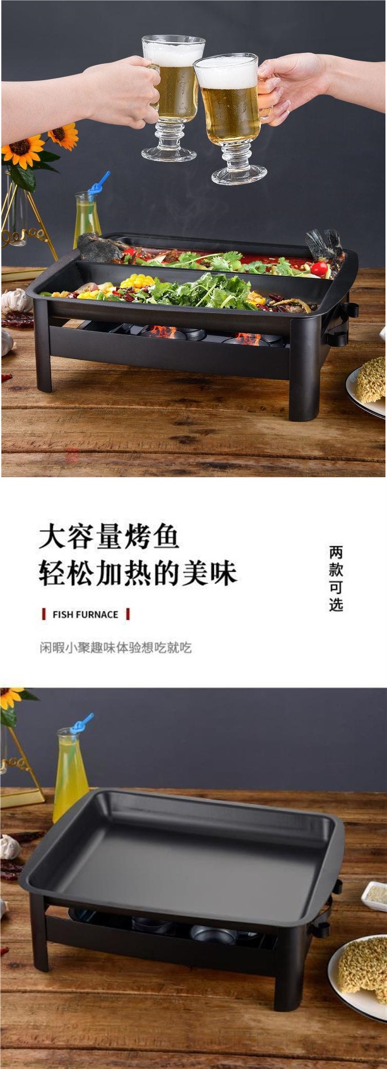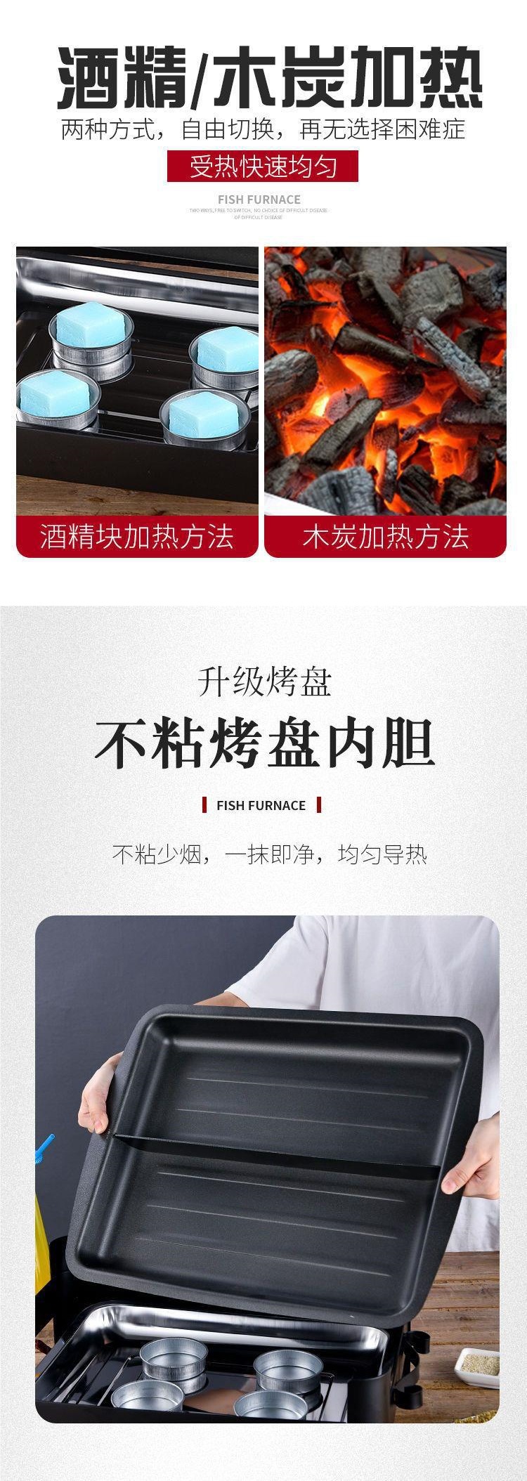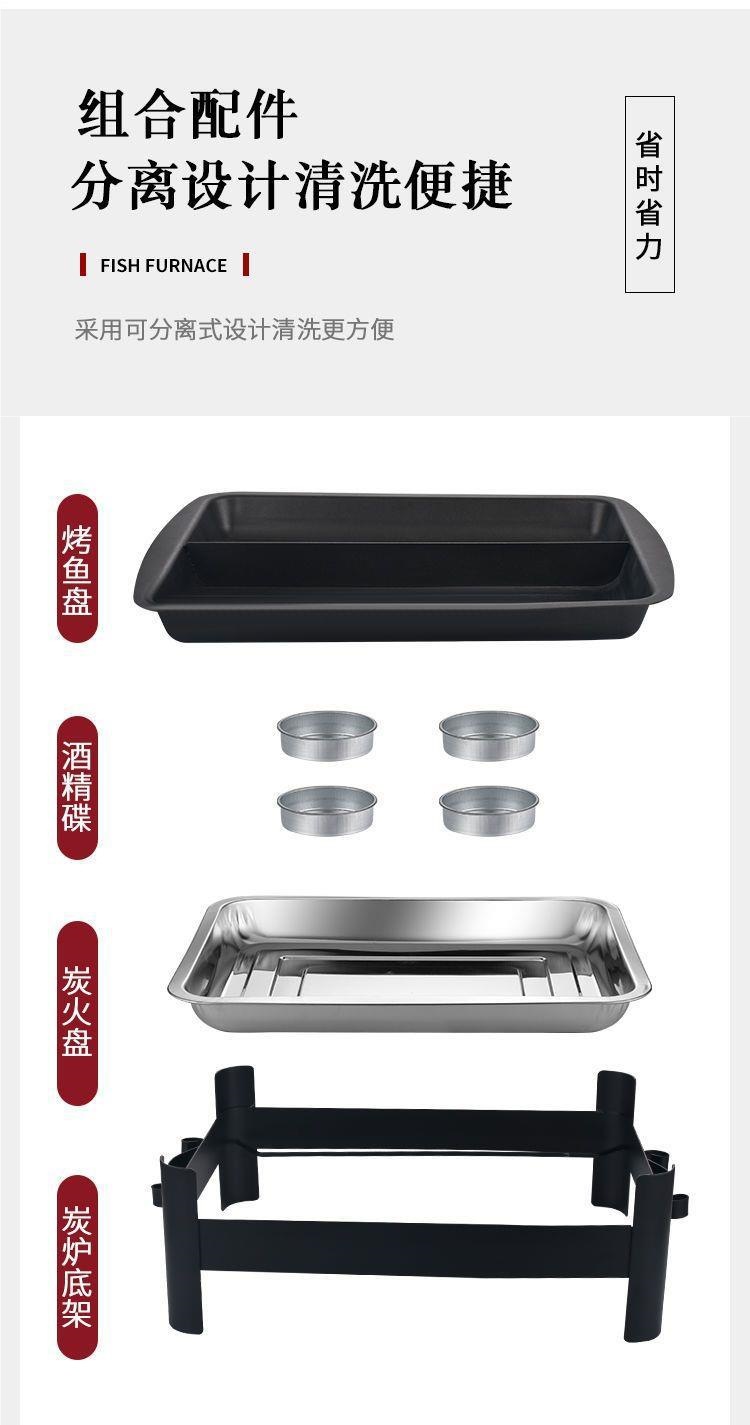 가정용 연치 생선 구이 접시 더블 맛 생선 구이 오븐 해산물 카본 직사각형 완저우 숯 상업용 생선 접시 구이 알코올 스토브스토어 가기