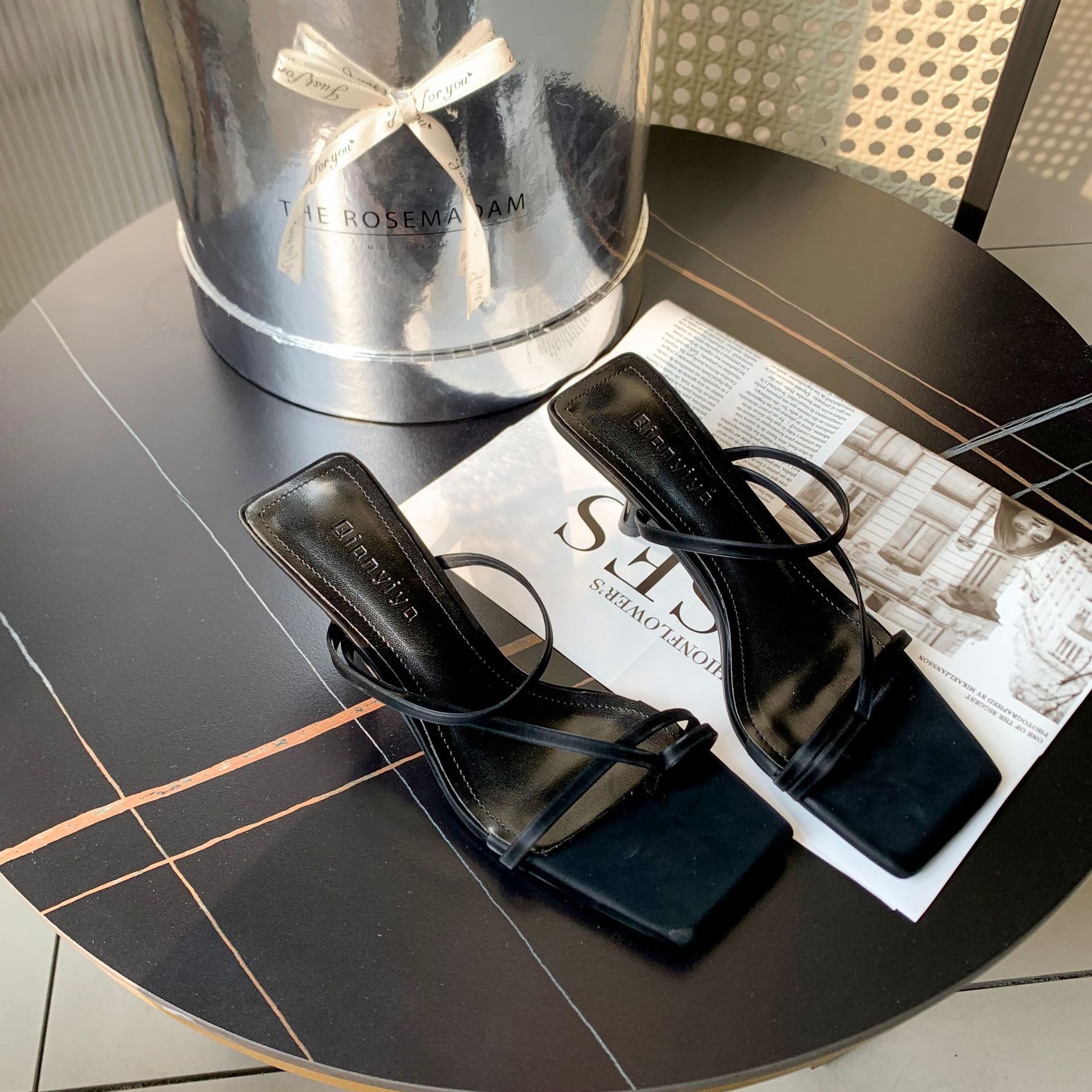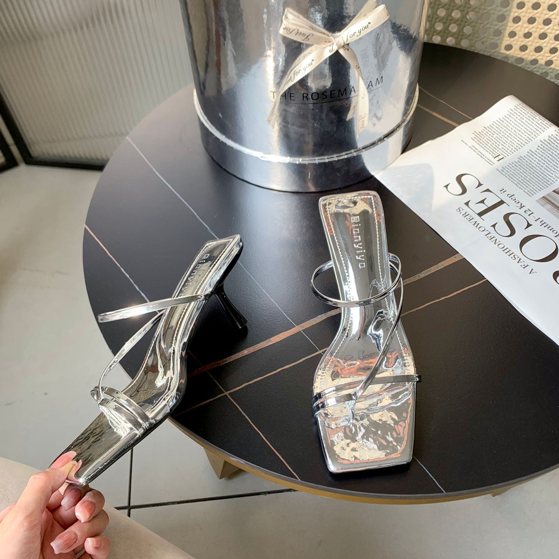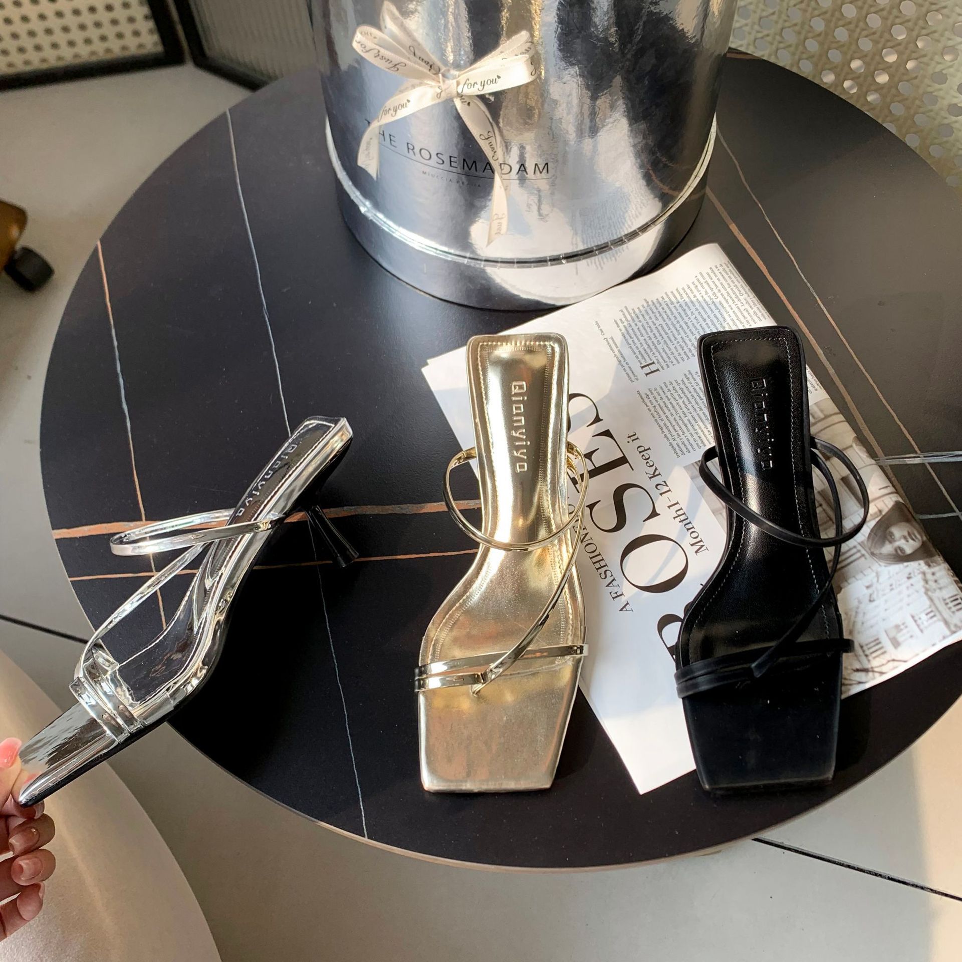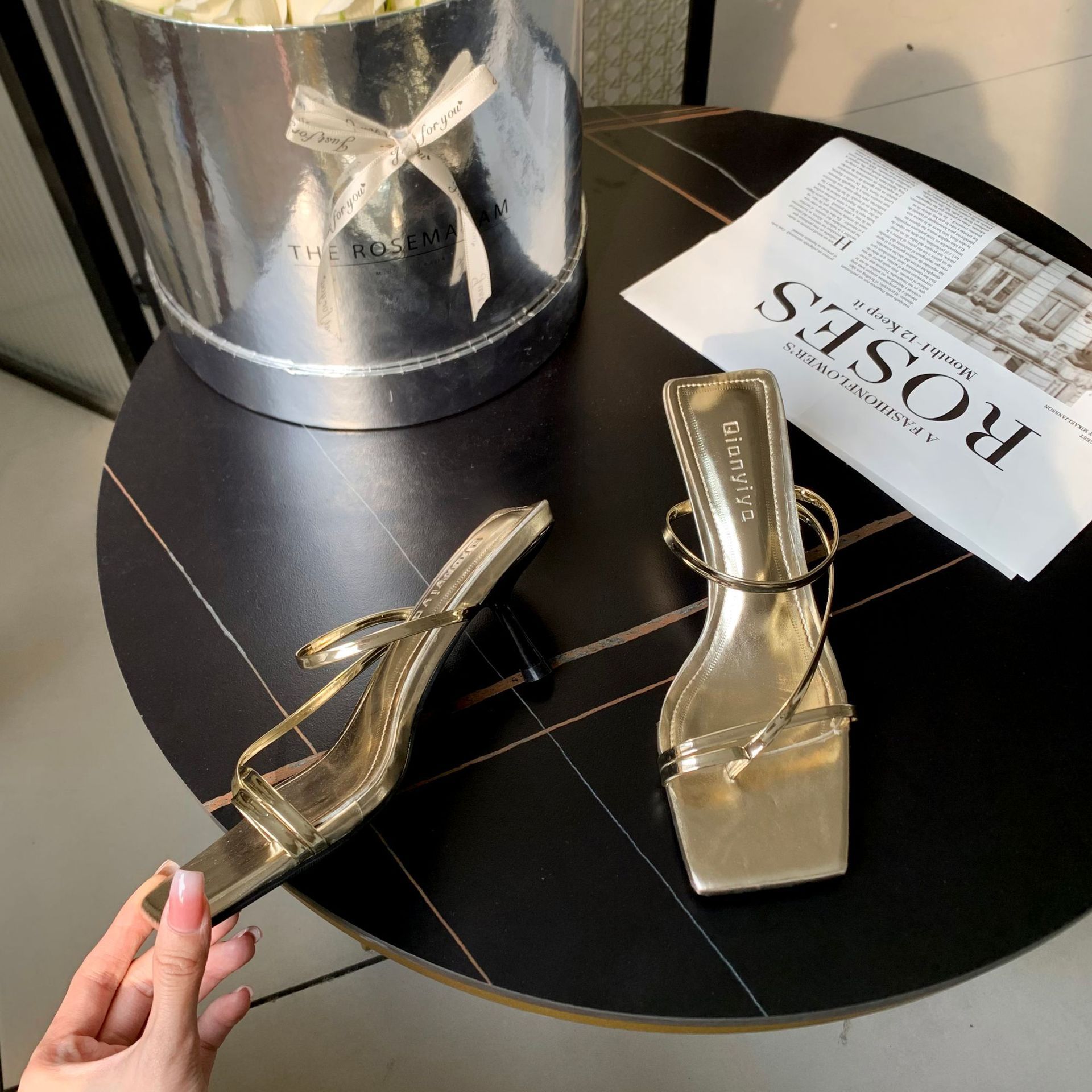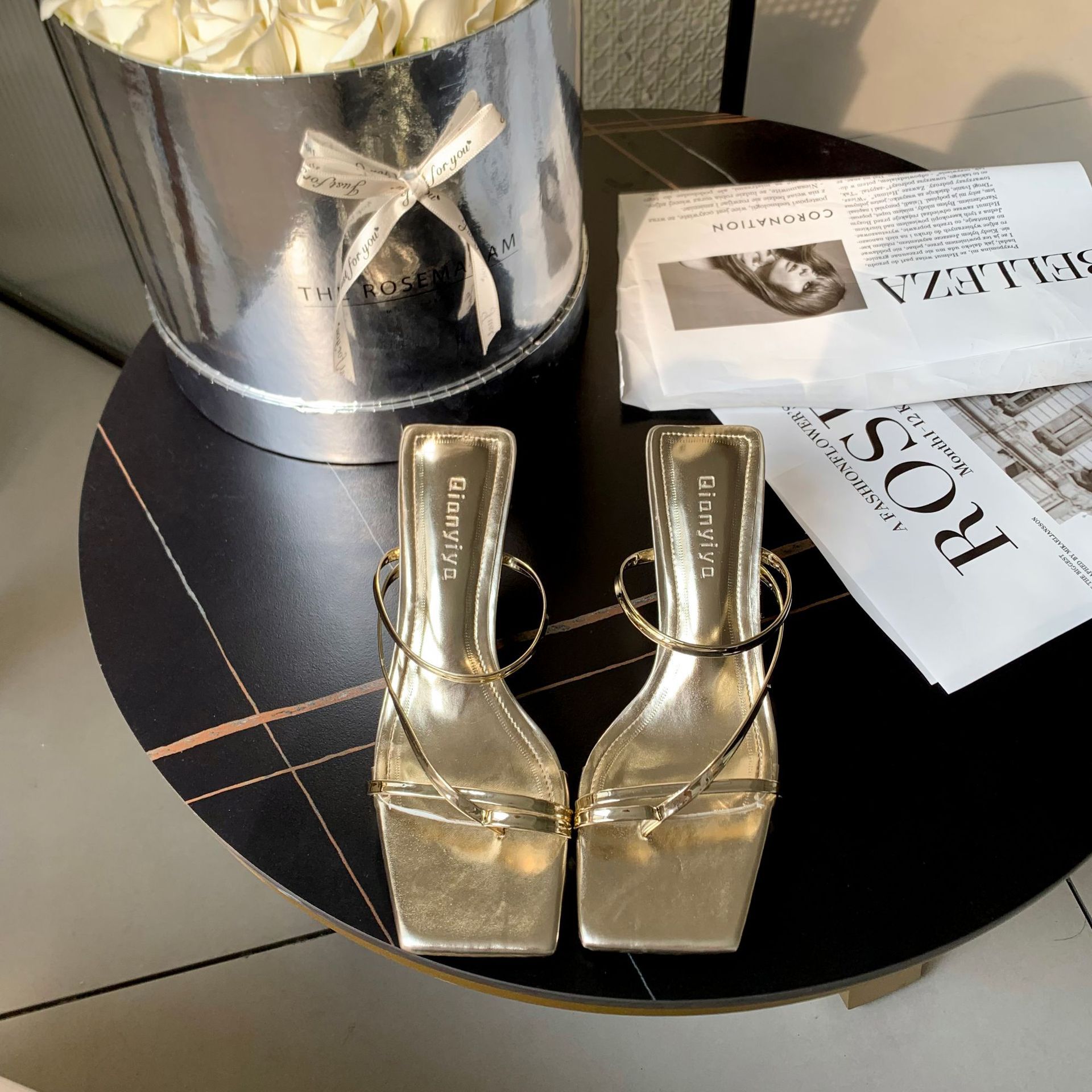 하이힐 틈새 프렌치 스퀘어 토 슬리퍼 여성화 2023 신상 여름 아우터 한국식 골드 샌들