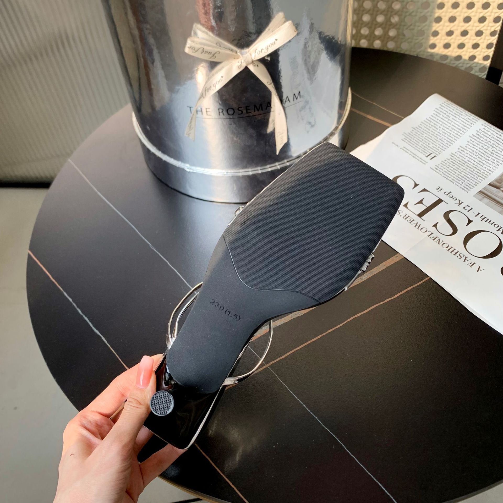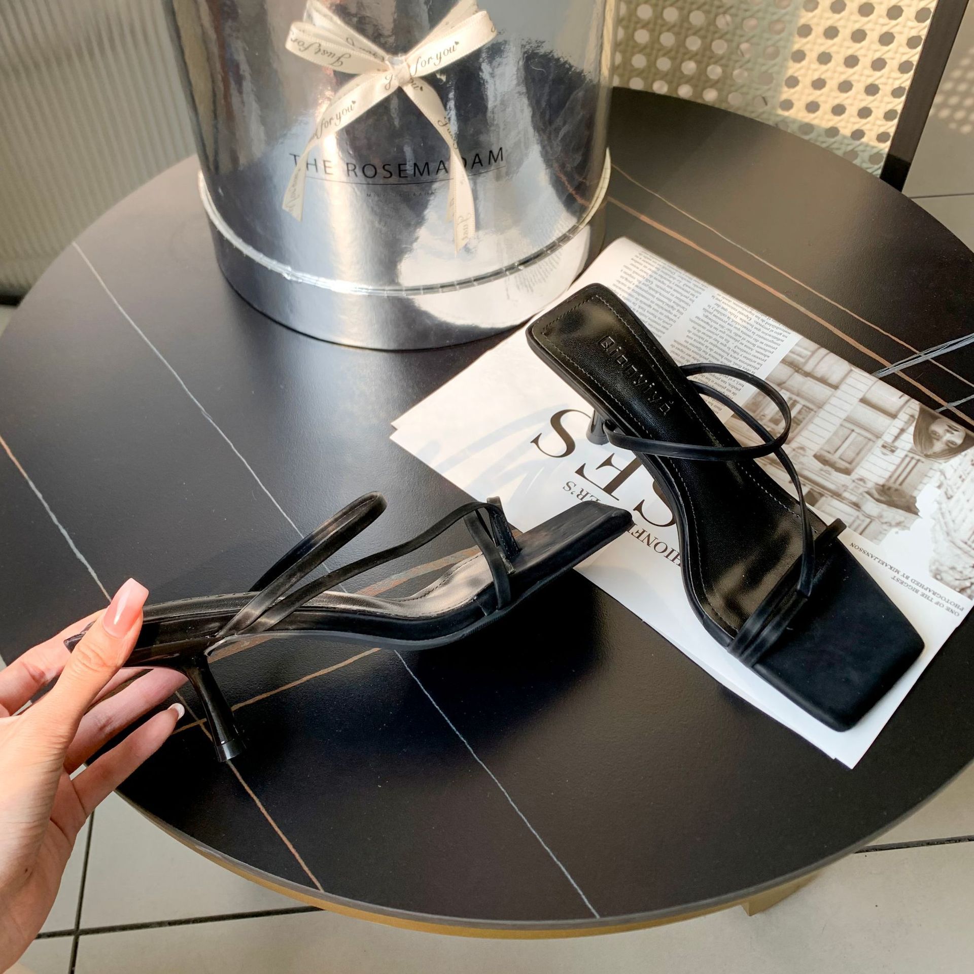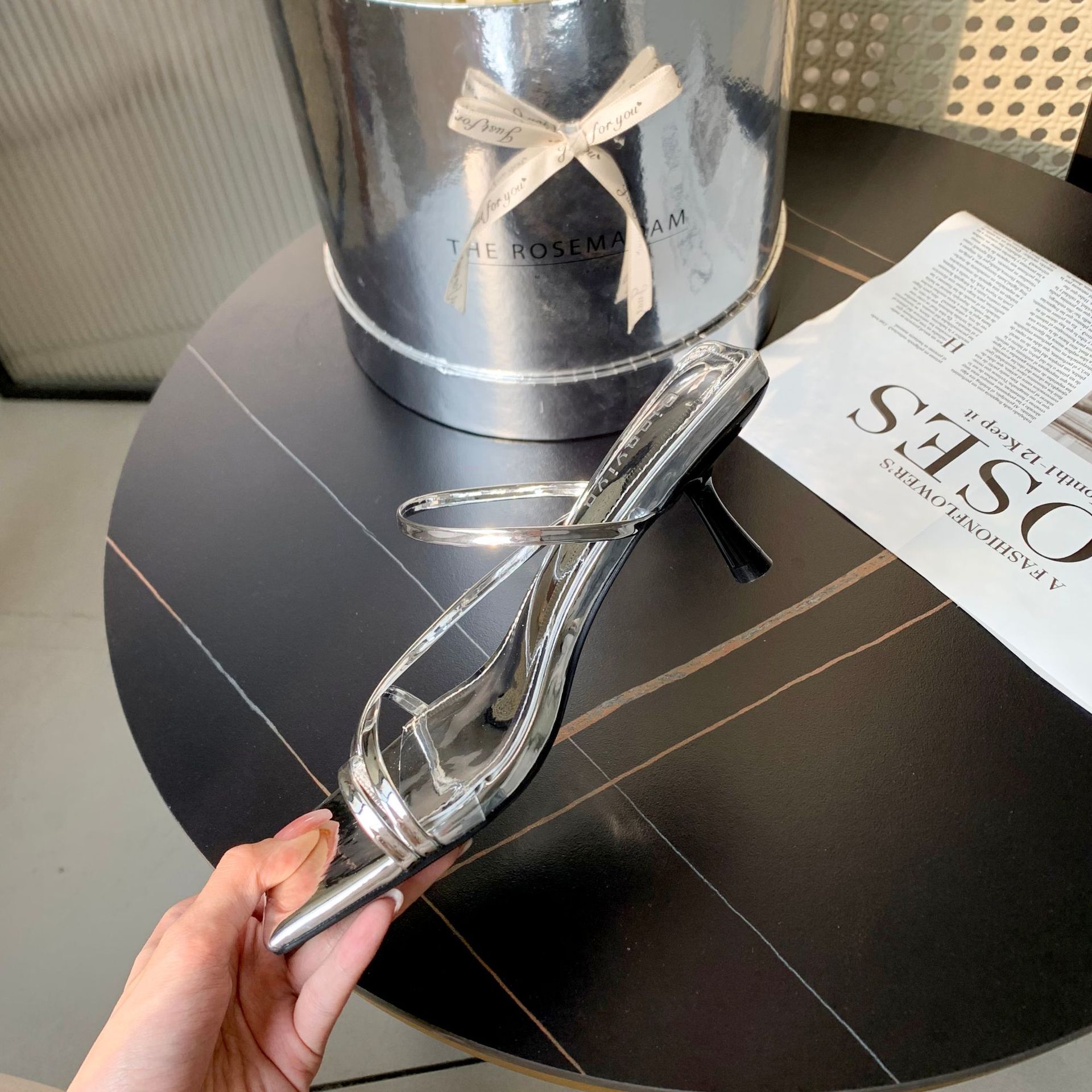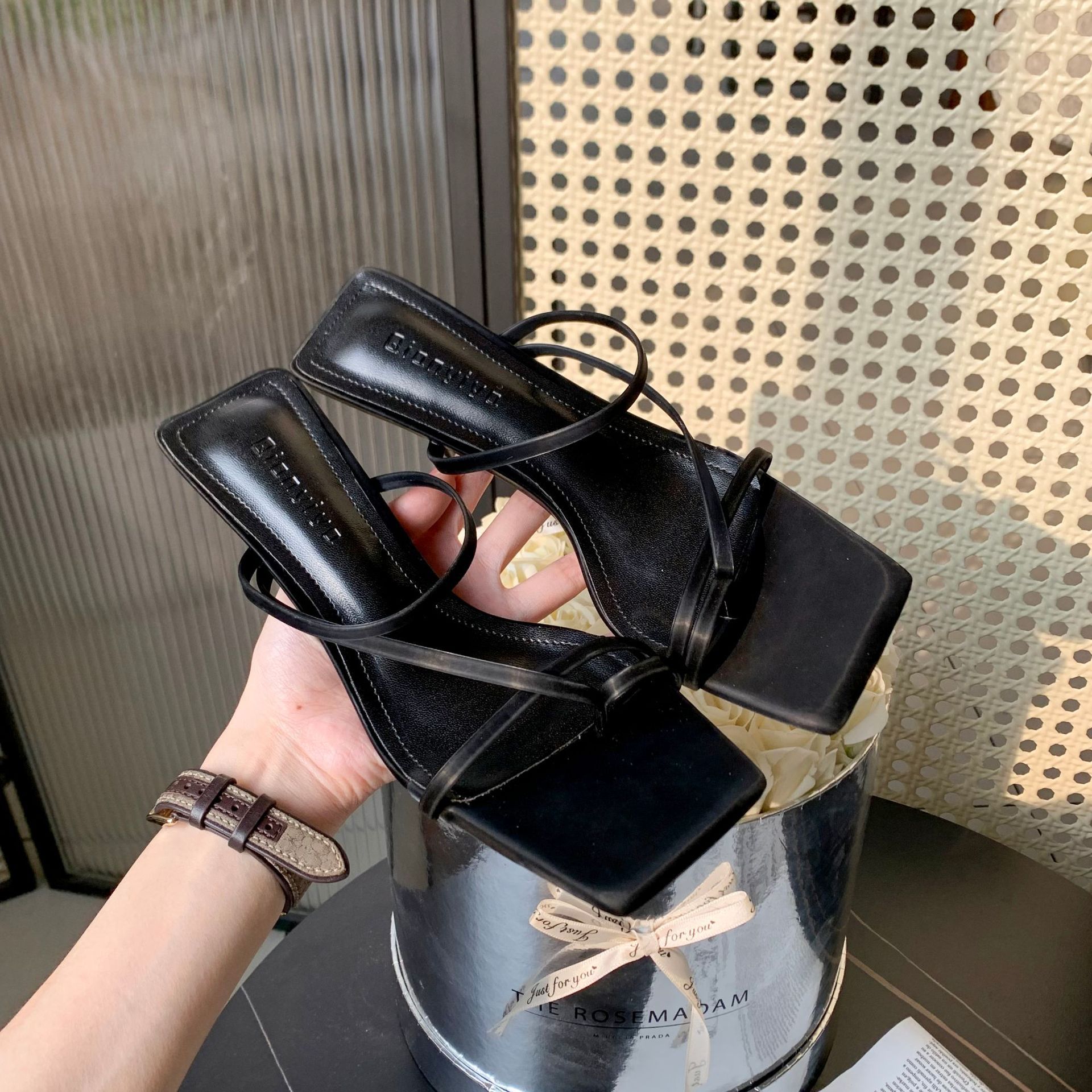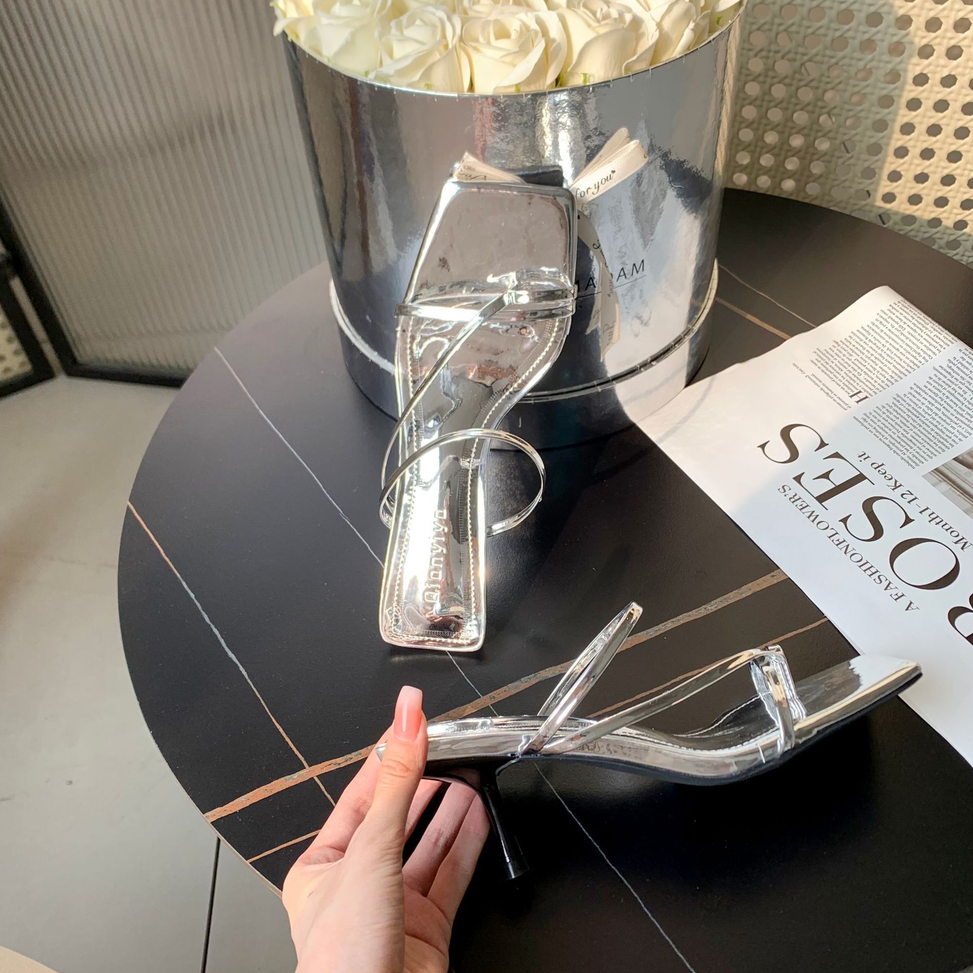 하이힐 틈새 프렌치 스퀘어 토 슬리퍼 여성화 2023 신상 여름 아우터 한국식 골드 샌들