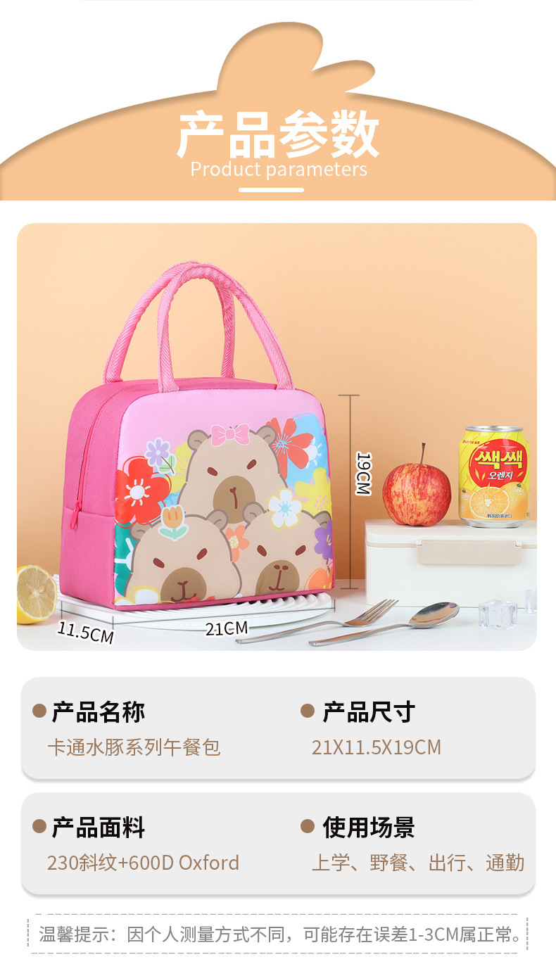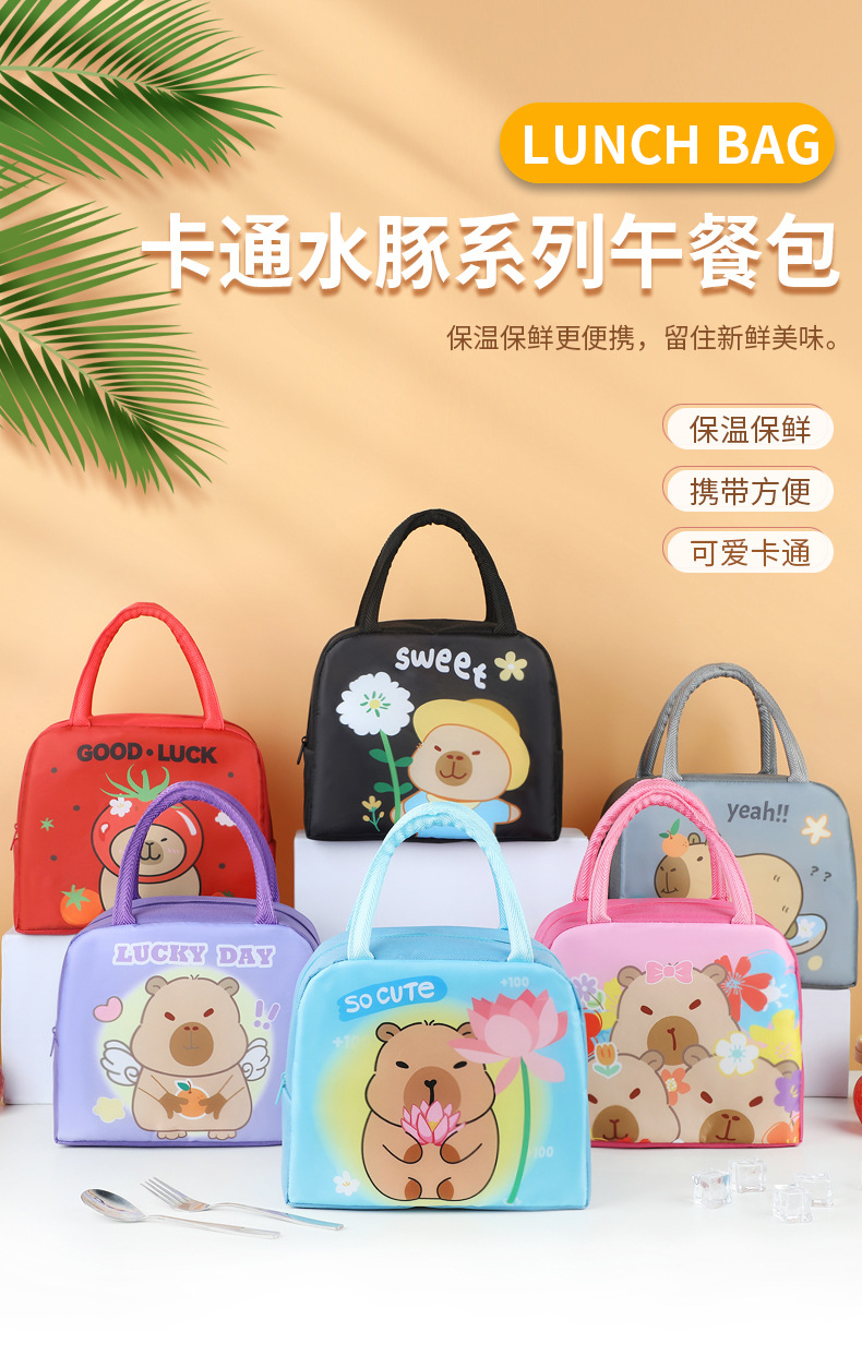 직장과 학교를 위한 새로운 귀여운 기니피그 만화 도시락 가방, 보온 도시락 가방, 도시락 가방, 귀여운 식사 가방