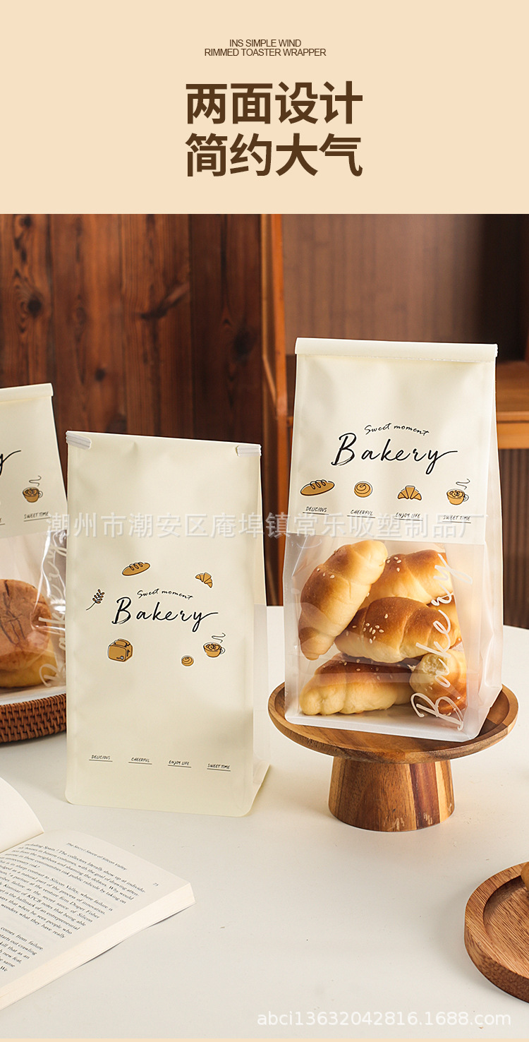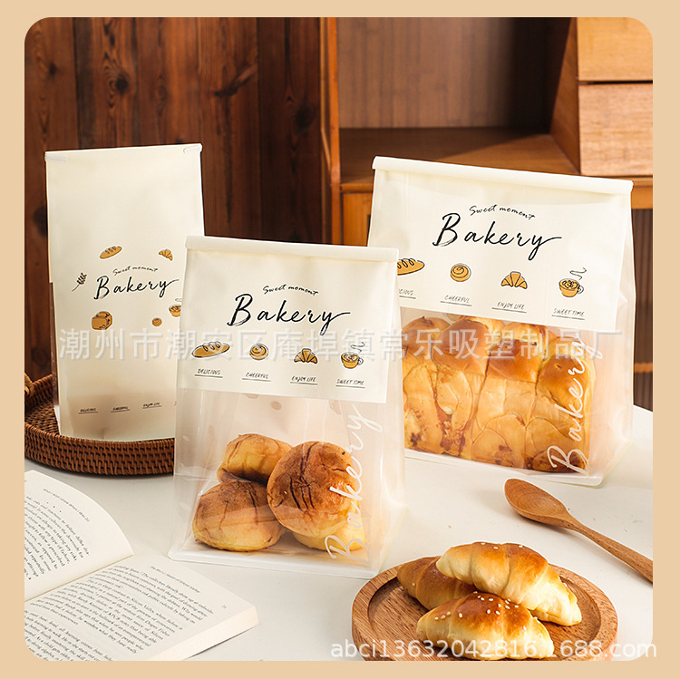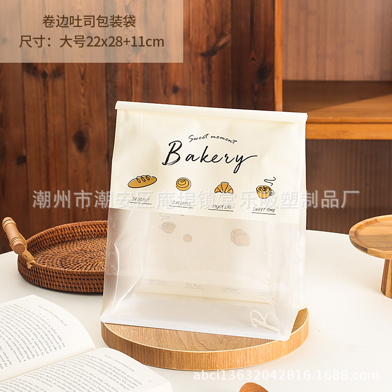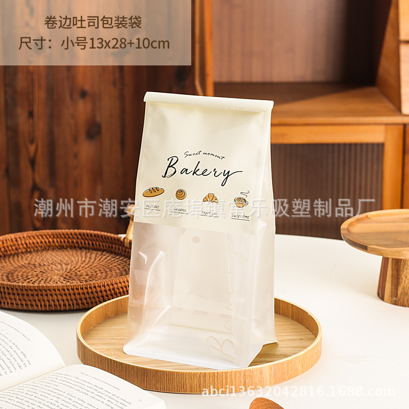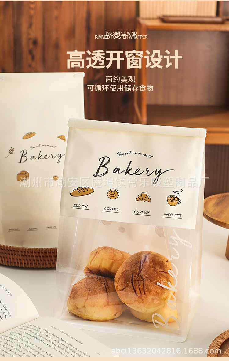 투명한 손으로 그린 인쇄가 있는 창이 있는 토스트 빵 포장 백 가정용 상업용 밀봉 백 와이어 컬링 밀봉 종이 백스토어 가기