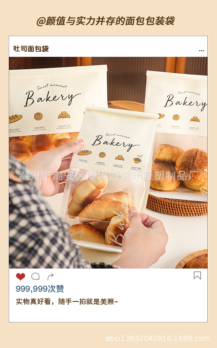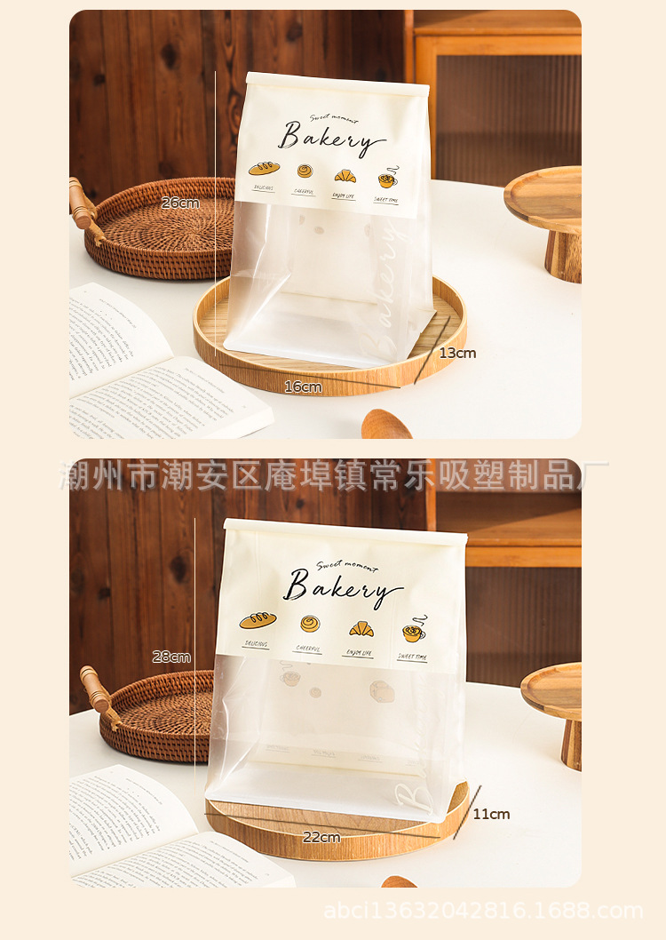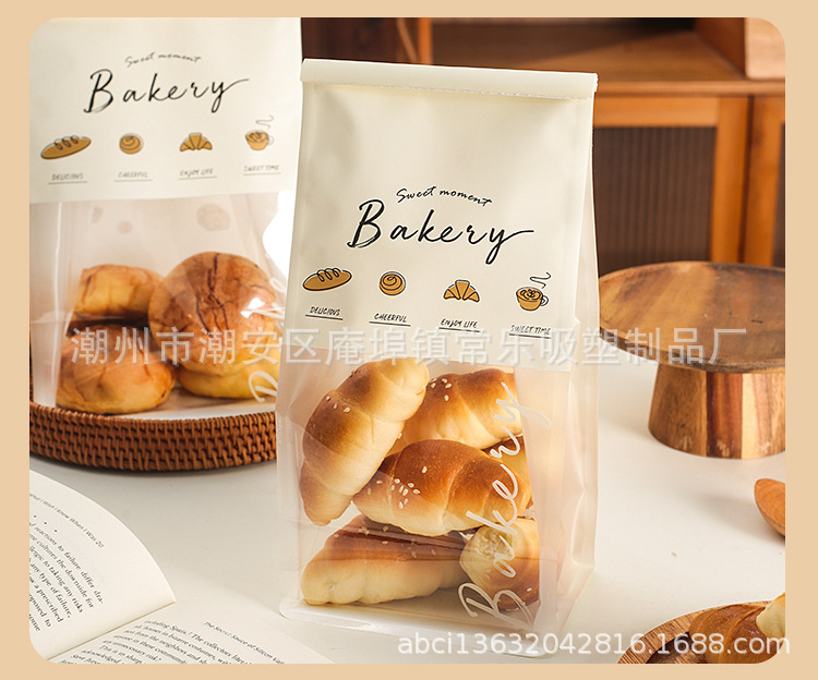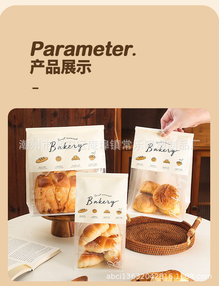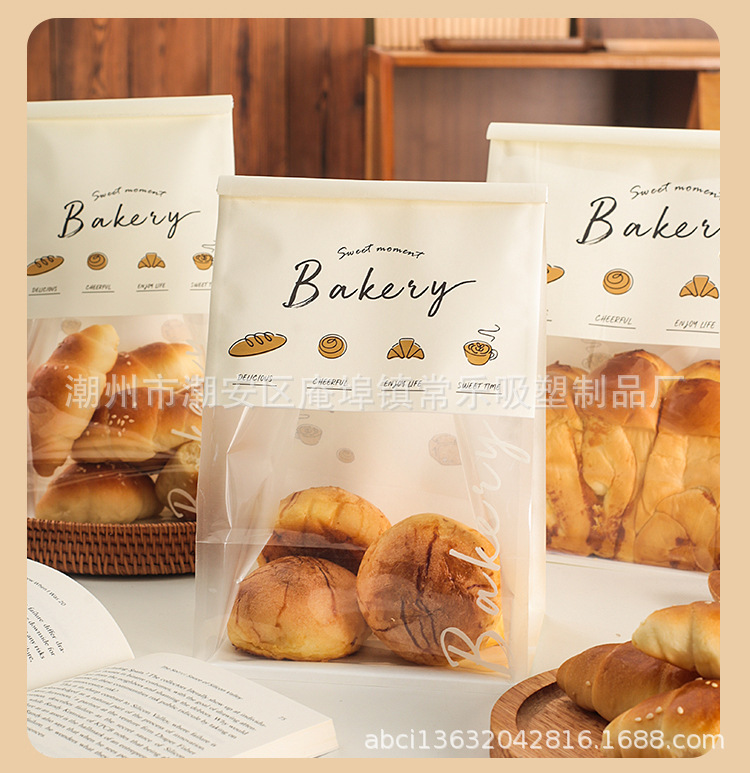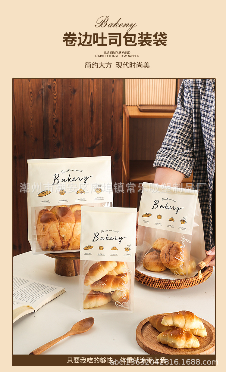투명한 손으로 그린 인쇄가 있는 창이 있는 토스트 빵 포장 백 가정용 상업용 밀봉 백 와이어 컬링 밀봉 종이 백스토어 가기