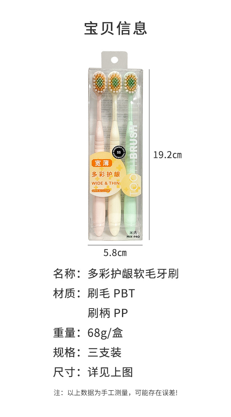 • 컬러풀한 잇몸 보호용 부드러운 모 칫솔 [3개입]