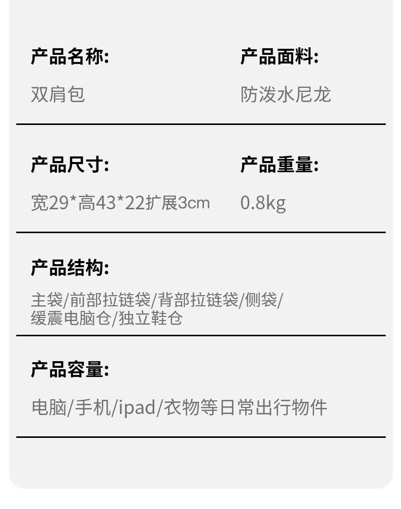 국경 간 여행 가방, 대용량 배낭, 습식 및 건식 분리 스포츠 피트니스 가방, 독립 신발 수납 공간, 여행용 배낭