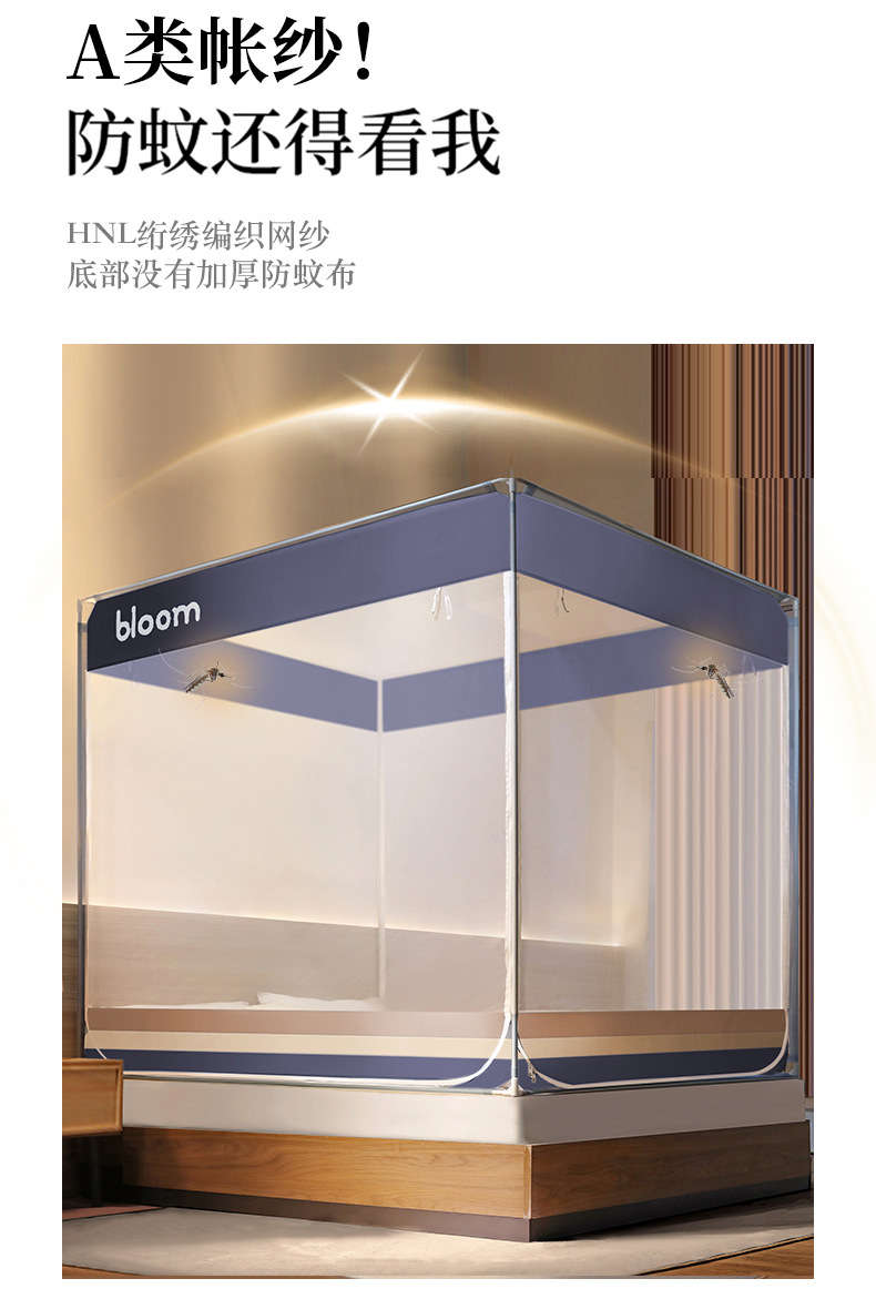 맞춤형 낙하 방지 모기장, 고급 모기 방지 침대 커튼, 궁전 기숙사 차광 가정용 A급 완전 차광 모기장 가공