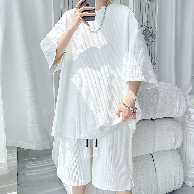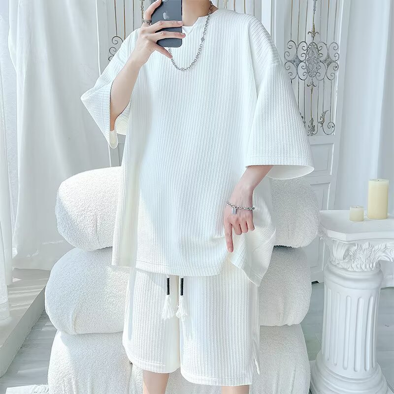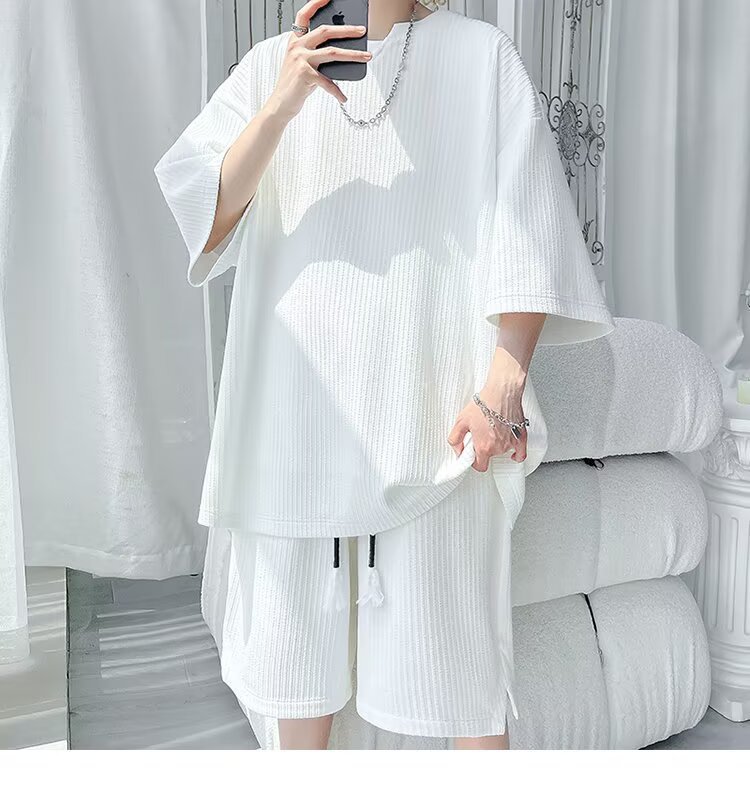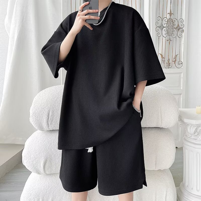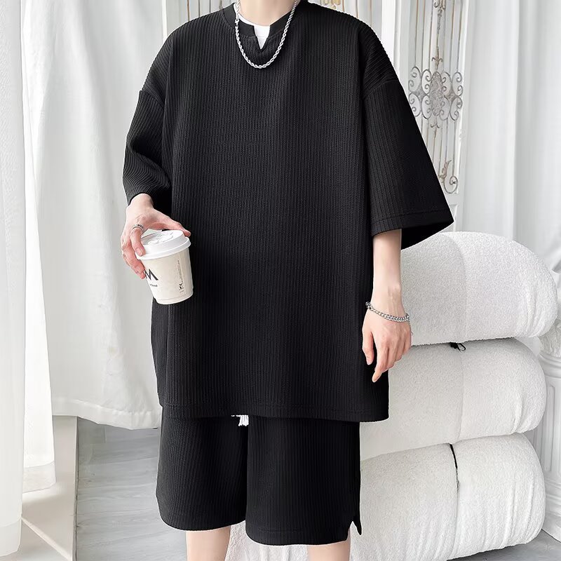8XL 대형 150kg 착용 가능한 캐주얼 정장 여름 2025 새로운 티셔츠 여름 반팔 반바지 남성 다목적