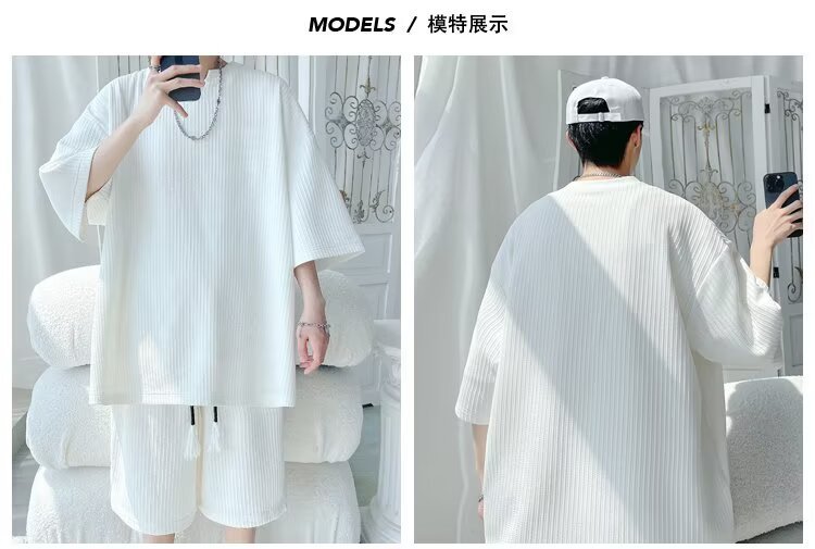 8XL 대형 150kg 착용 가능한 캐주얼 정장 여름 2025 새로운 티셔츠 여름 반팔 반바지 남성 다목적스토어 가기