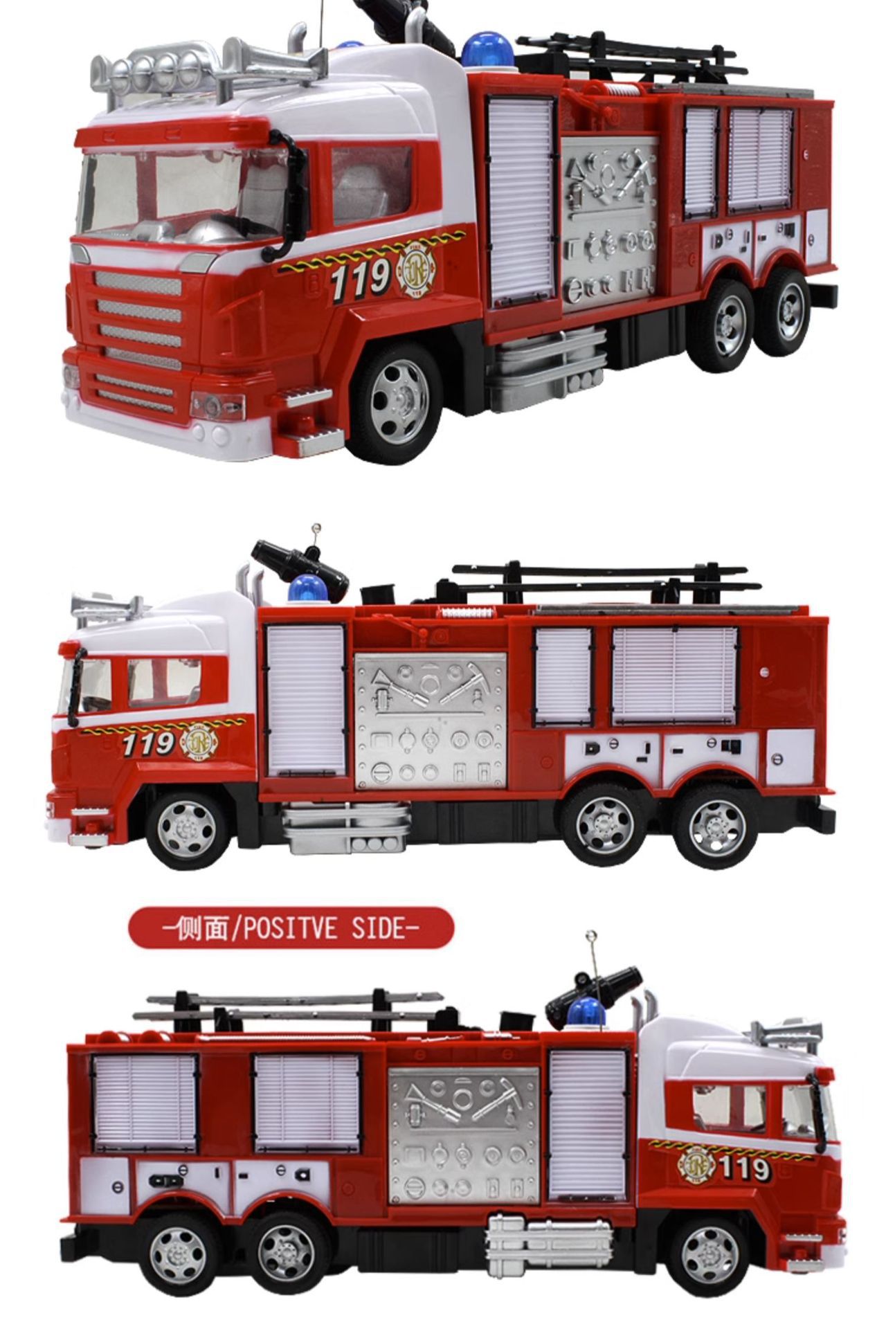 • 10종 세트 + 소방복 + 원격 제어 스프링클러 소방차