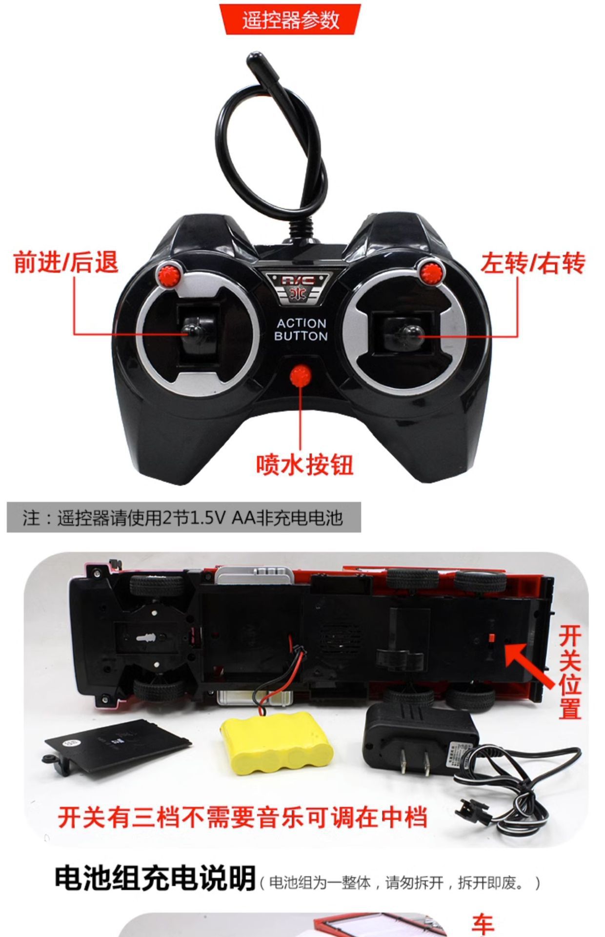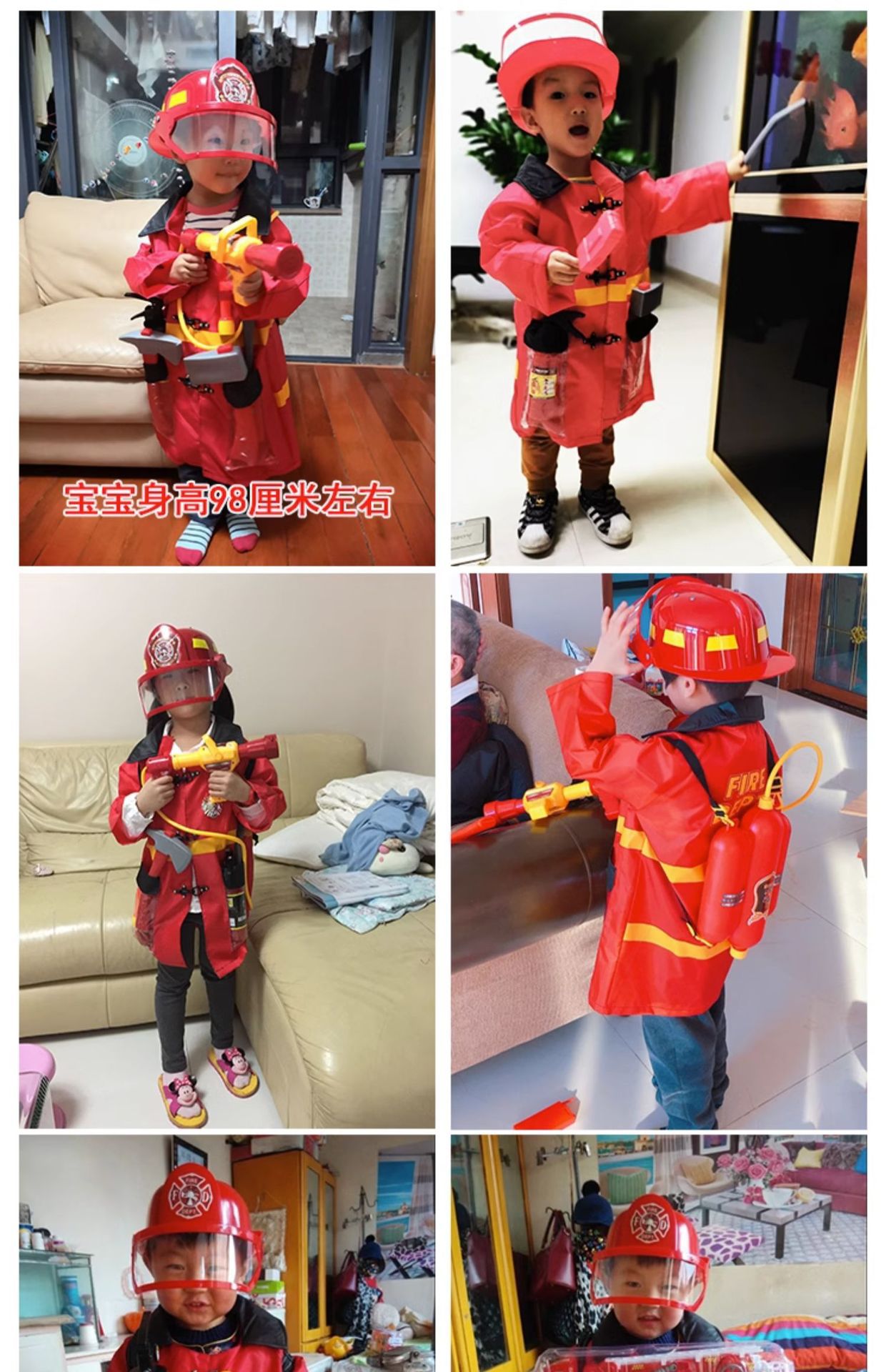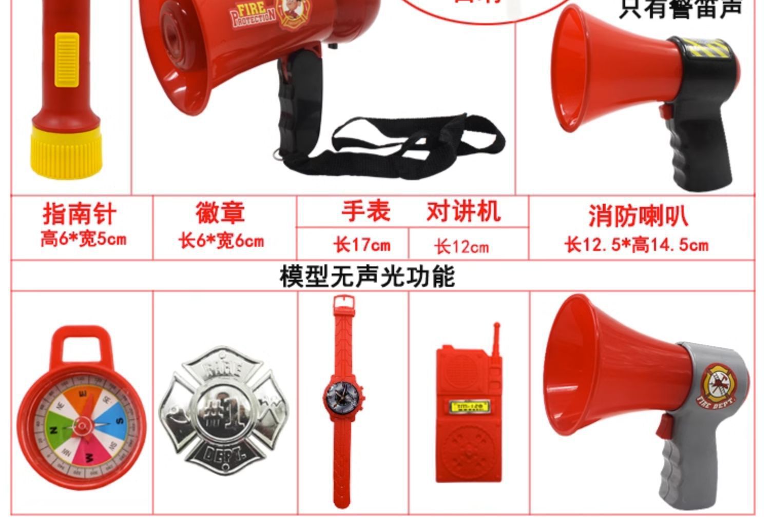 • 소리와 빛 모자 + 조끼 + 물총 + 소형 소화기 3개 도구