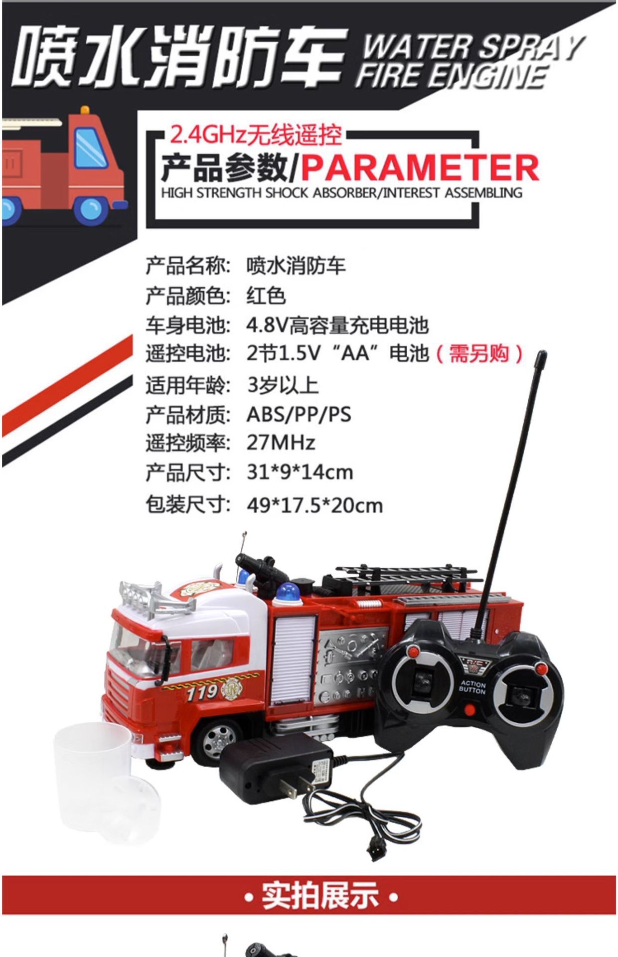 • 10종 세트 + 조끼 + 리모콘 스프링클러 소방차