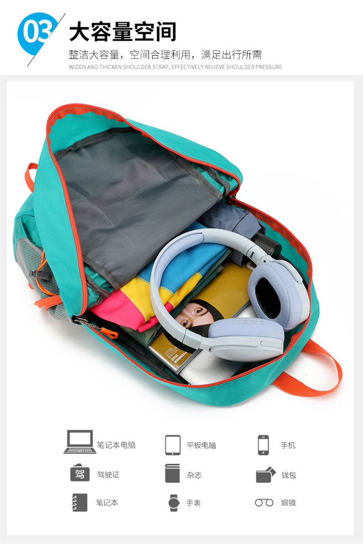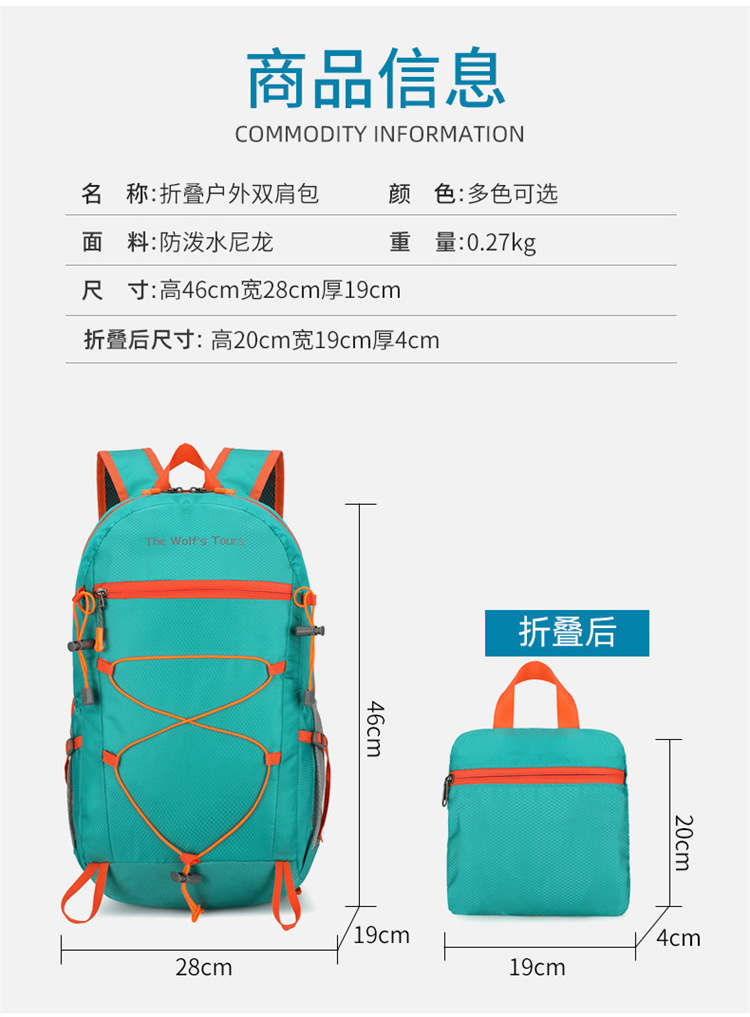 국경 간 새로운 야외 접이식 배낭 방수 경량 등산 여행 배낭 단색 대용량 사이클링 가방스토어 가기