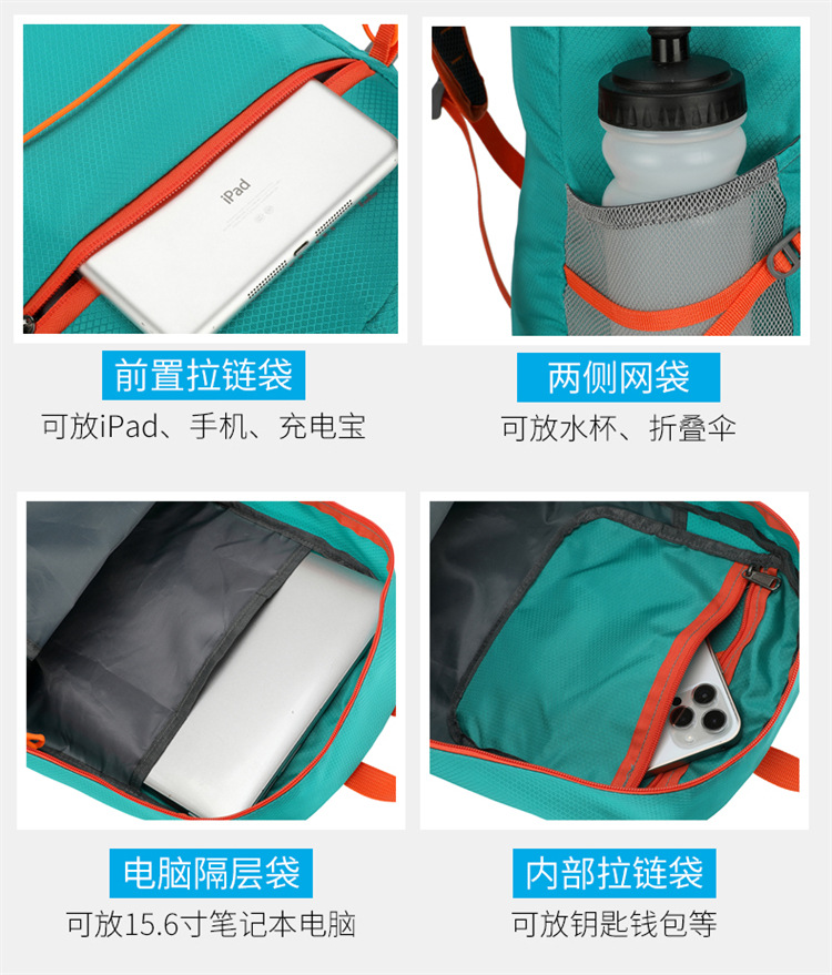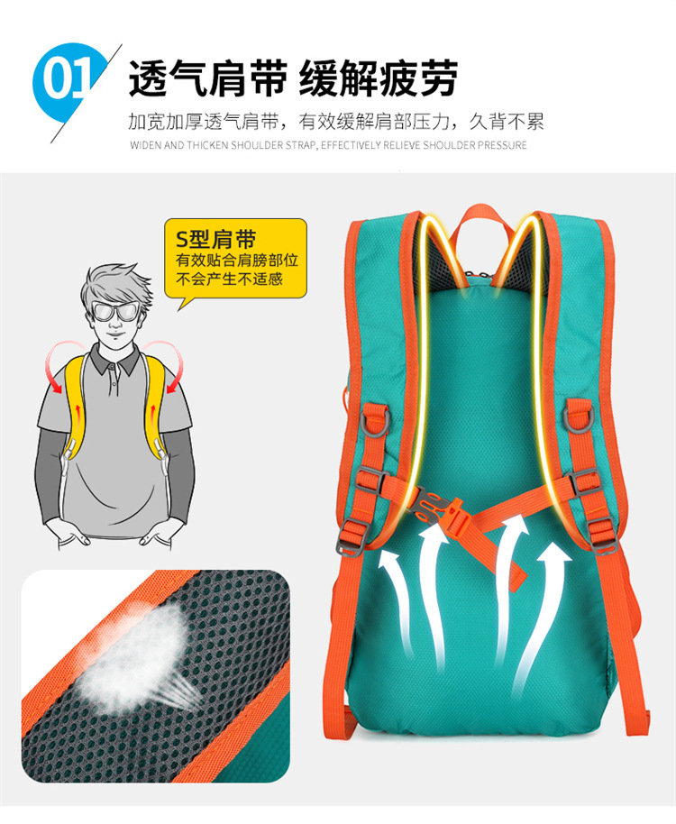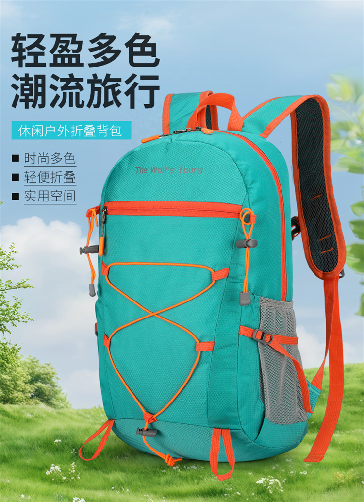 국경 간 새로운 야외 접이식 배낭 방수 경량 등산 여행 배낭 단색 대용량 사이클링 가방