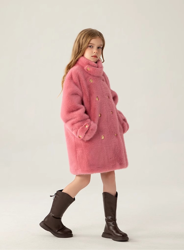 어린이 모피 코트 겨울 소녀 모조 밍크 모피 어린 소녀 모피 코트 중간 길이 퀼트 두꺼운 면 코트