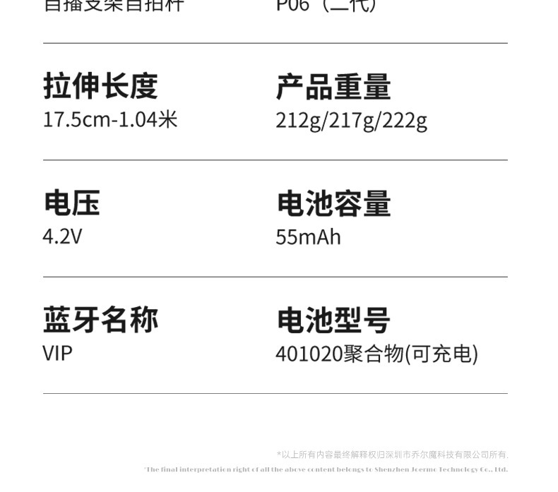 P06 셀카봉, 흔들림 방지, 접이식 블루투스 원격 제어, 4개의 다리, 라이브 방송 셀카, 흔들림 방지, 접이식 휴대폰 홀더