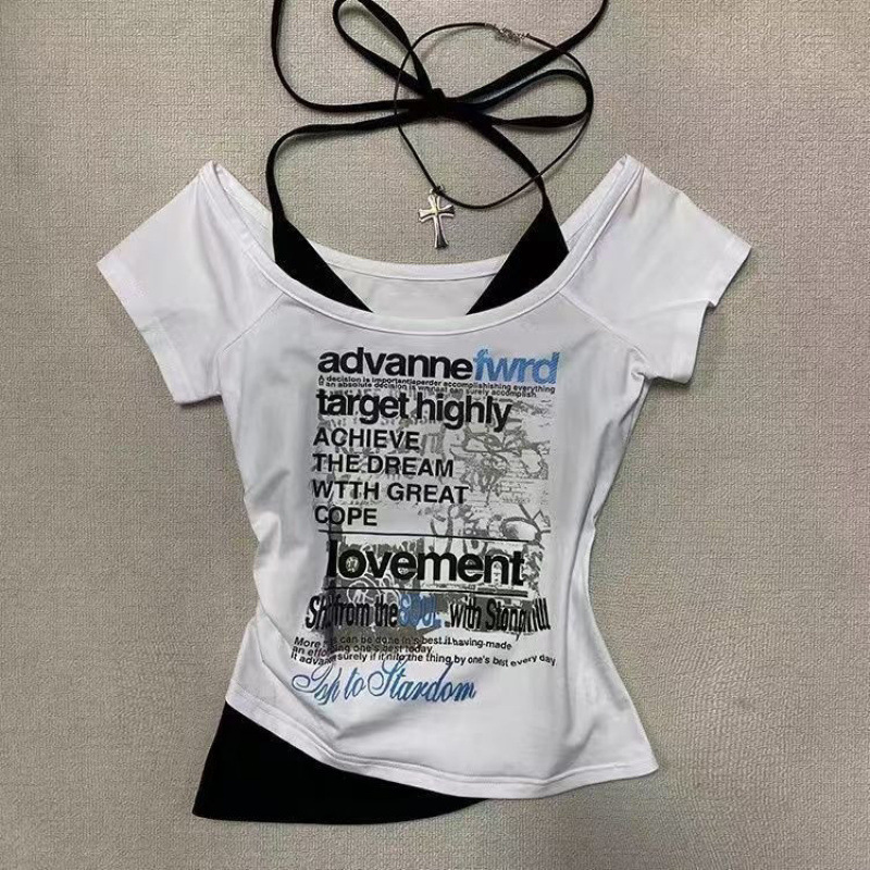 아메리칸 빈티지 레터 코튼 프린트 반소매 셔츠 2025 여름 새로운 디자인 쇼트 탑