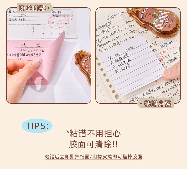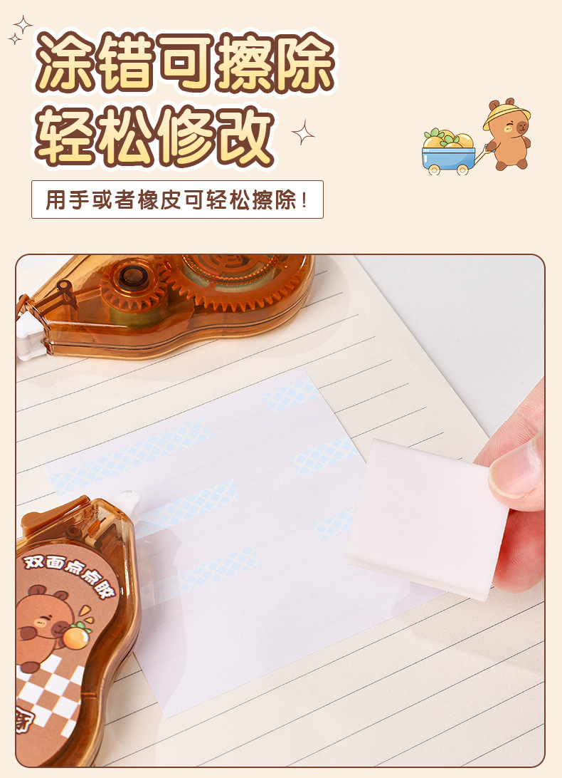 학생들을 위한 크리에이티브 카피바라 도트 접착제, 대용량 양면 접착제, 고급스러운 수제 핸드북 테이프스토어 가기