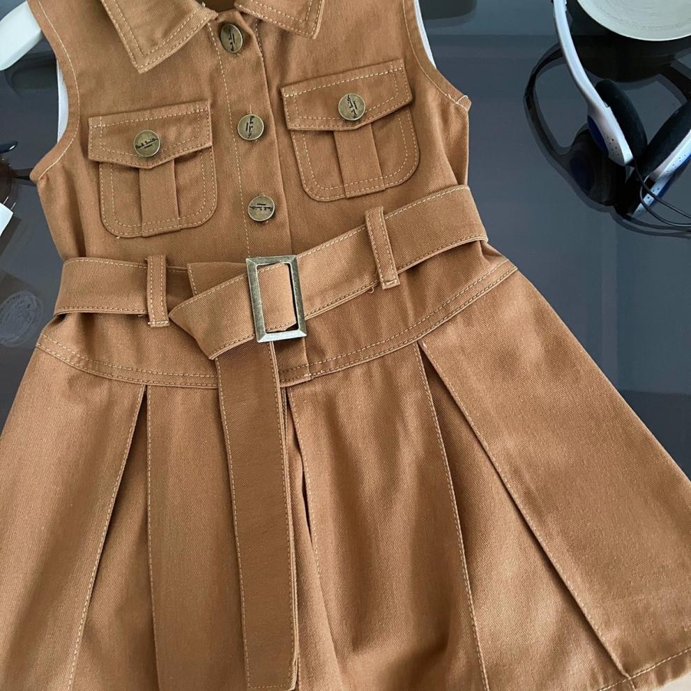 2025 새로운 여름 한국 스타일 소녀 민소매 허리 슬림 스타일 귀여운 데님 드레스 77391스토어 가기