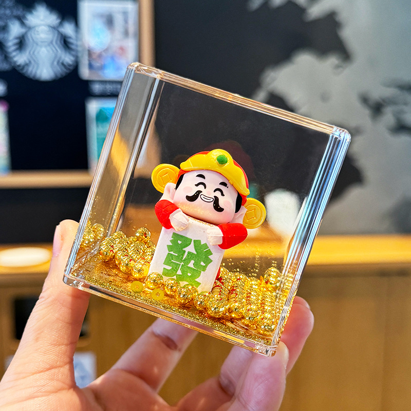 2025 새로운 부의 신 오일 유사 장식품 귀여운 만화 인형 사무실 데스크탑 장식 작은 장식품