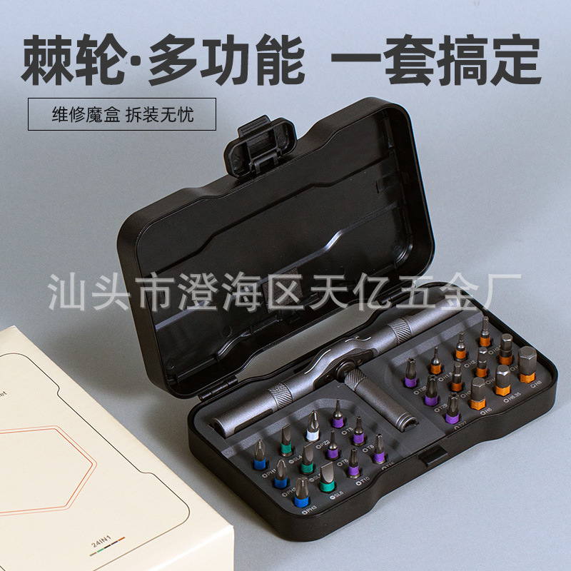 24-in-1 래칫 드라이버 세트 조합 가정용 렌치 드라이버 도구 다기능 S2 비트 다목적 분해 및 조립