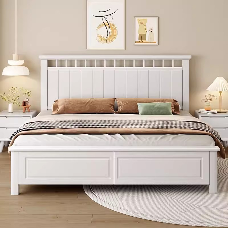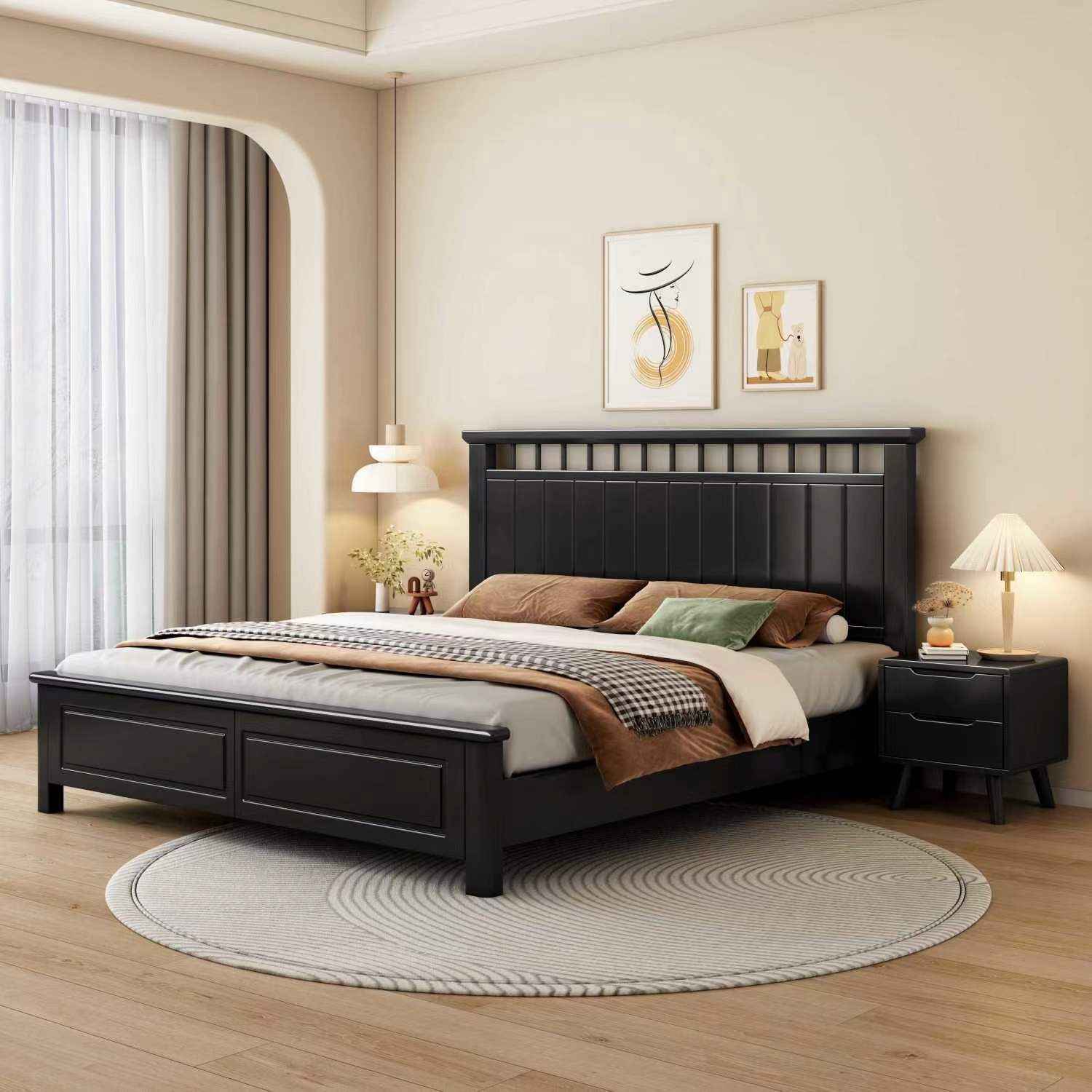 레트로 블랙 아메리칸 올 원목 침대 1.8m 더블 침대 홈 마스터 침실 대형 침대 크림 스타일 1.5m 싱글 침대
