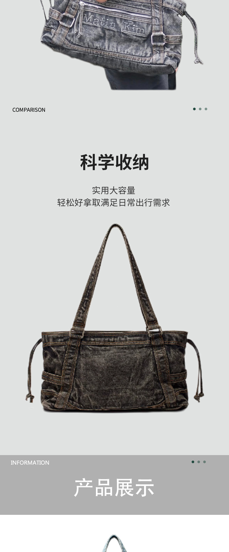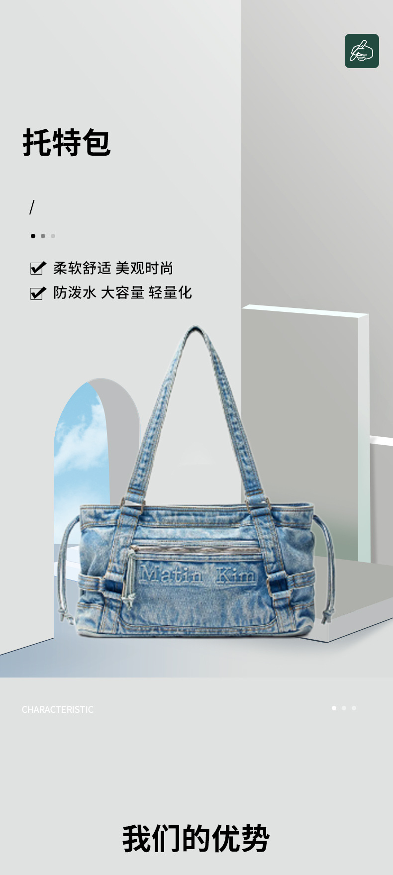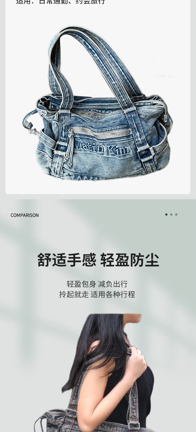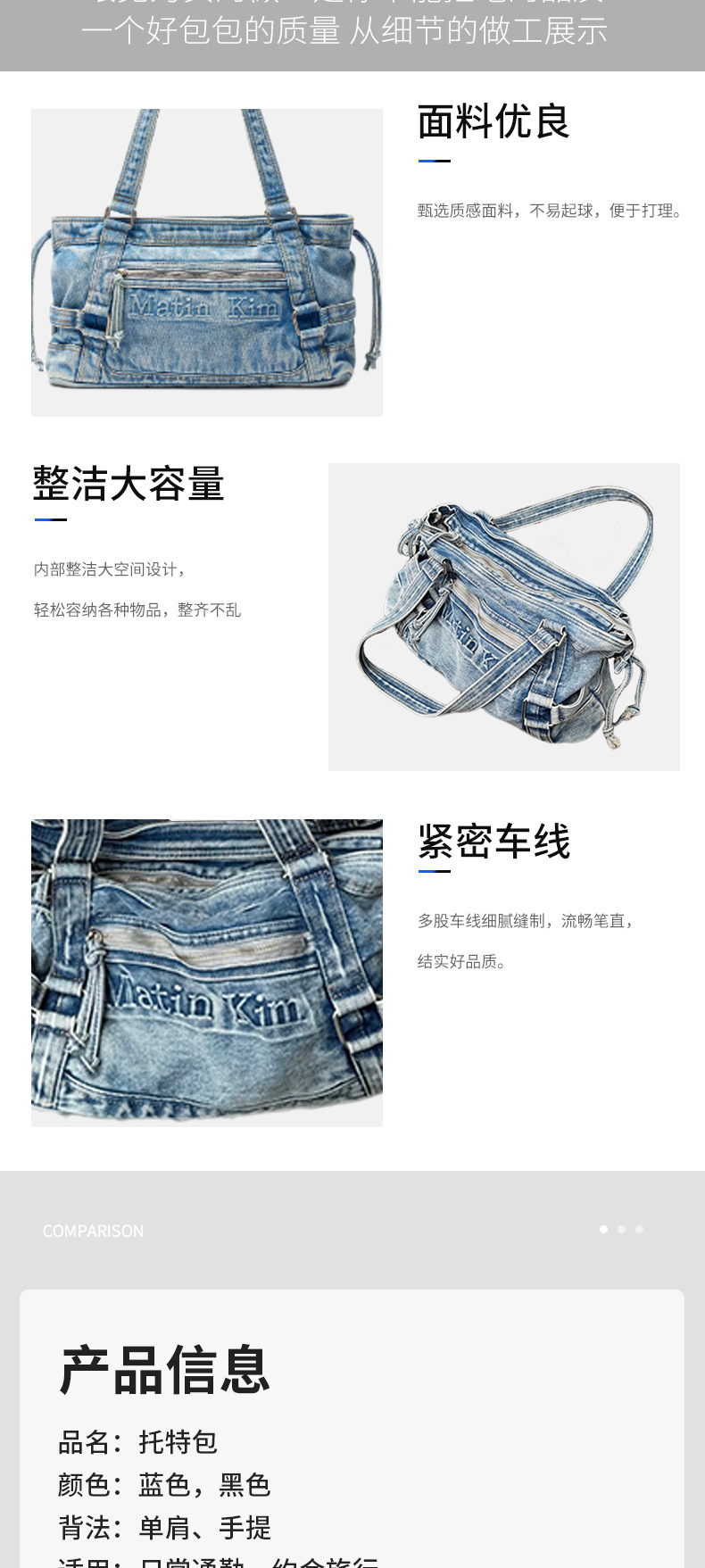 한국 신상 마틴킴 레트로 데님 토트백 여성용 고급 숄더백 겨드랑이백 여성 가방 도매스토어 가기