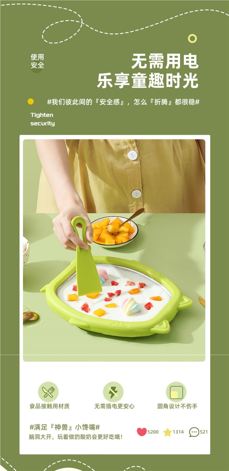 볶음 요구르트 기계 가정용 소형 볶음 얼음 기계 미니 어린이 볶음 요구르트 아이스크림 기계 볶음 얼음 트레이 플러그인 없음스토어 가기