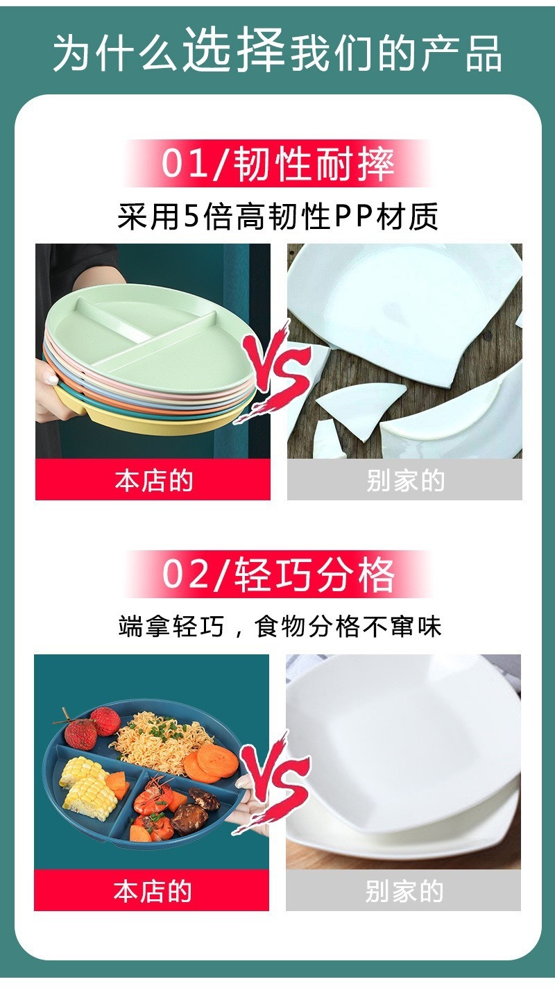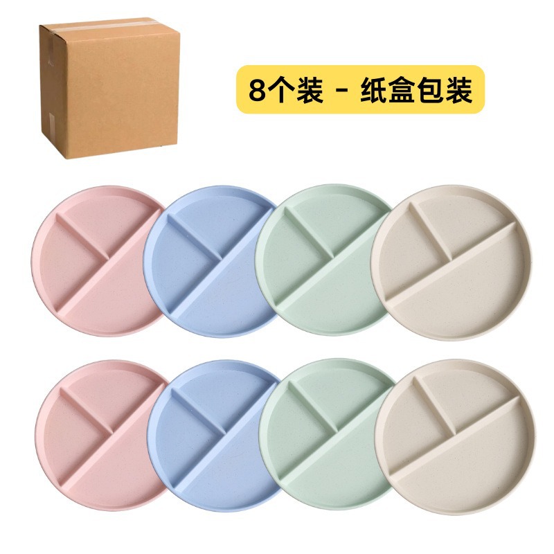 밀짚 분할 접시 ins 가정용 정량 211 3칸 분할 접시 원형 지방 감소 접시 플라스틱 접시스토어 가기
