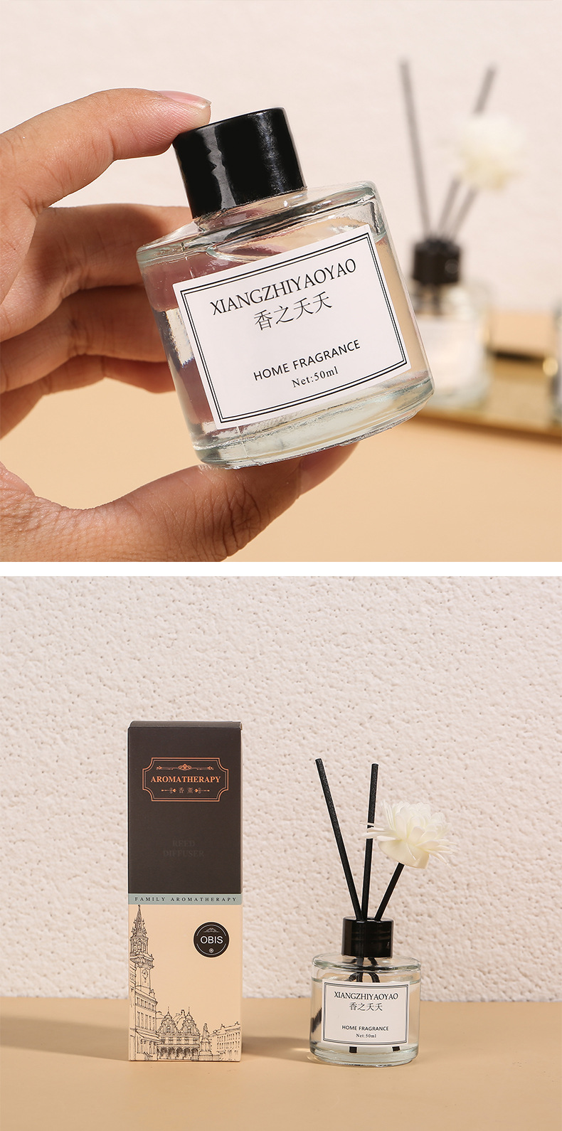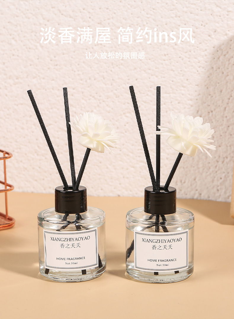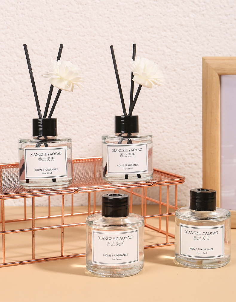 아로마 테라피 실내 오래 지속되는 가정용 액체 불없는 아로마 테라피 화장실 탈취제 장식품 라운드 병 등나무 욕실 50ml스토어 가기