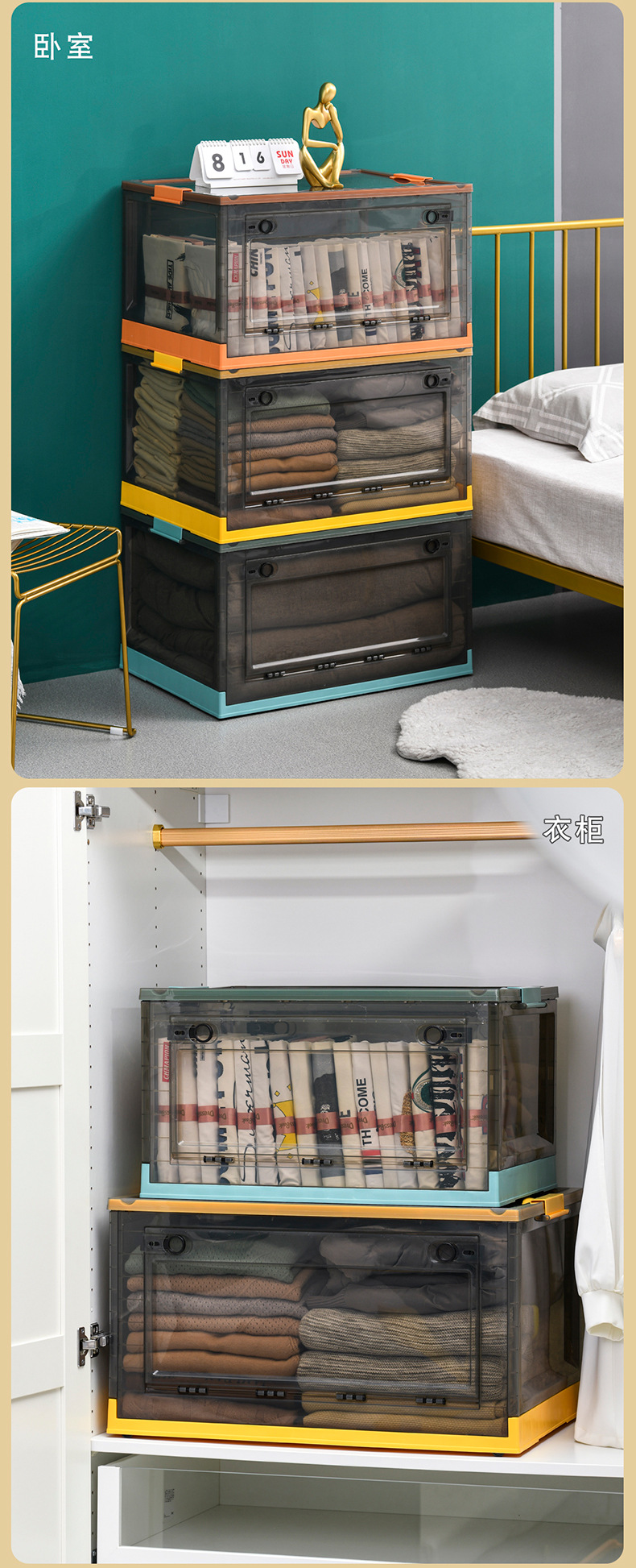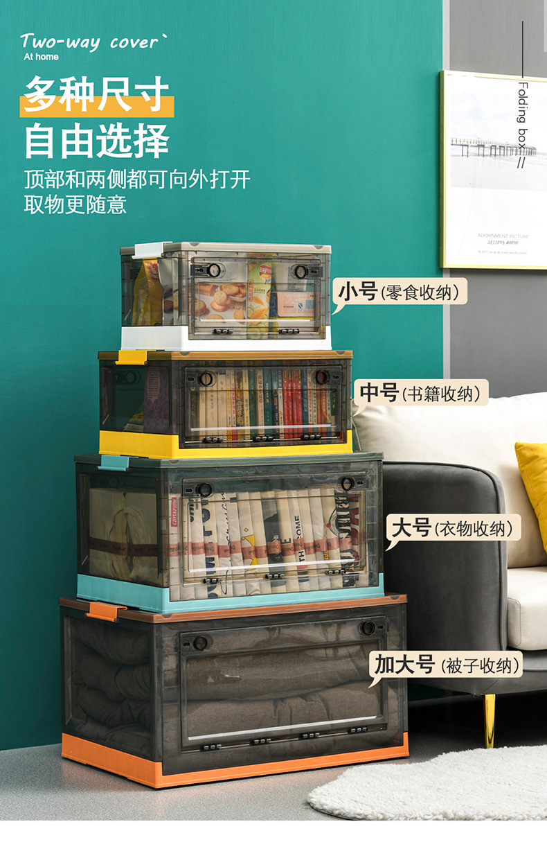 제조업체 맞춤형 접이식 양문형 보관함, 뚜껑이 있는 투명 정리함, 장난감 보관함, 초대형 바퀴 달린 책