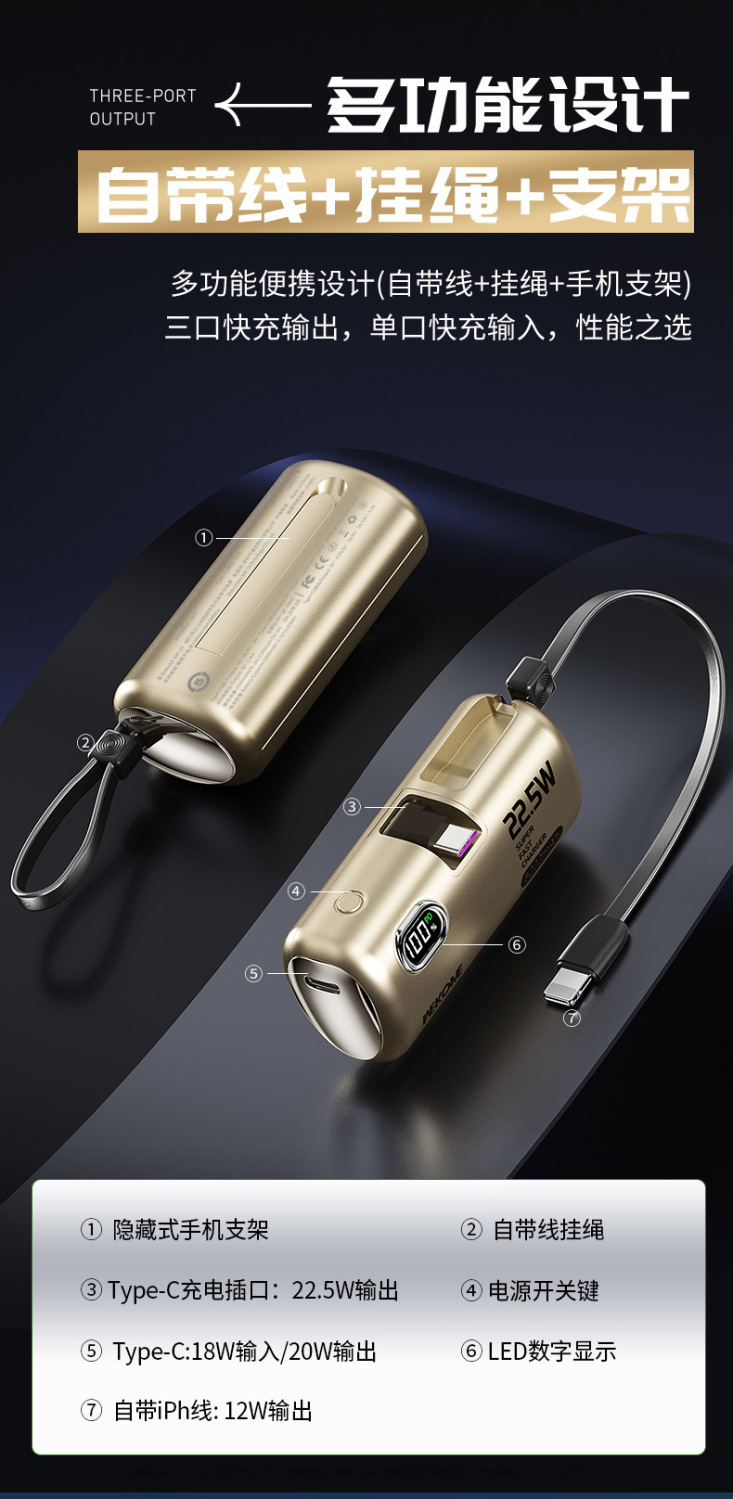 Vipint 미니 캡슐 보조베터리는 이중 라인 초고속 충전 mAh 소형 범용 모바일 전원 공급 장치와 함께 제공됩니다.