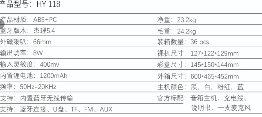 ●蓝牙方案:杰理 5.3+EDR ●内置锂电池:1200mAh带保护
