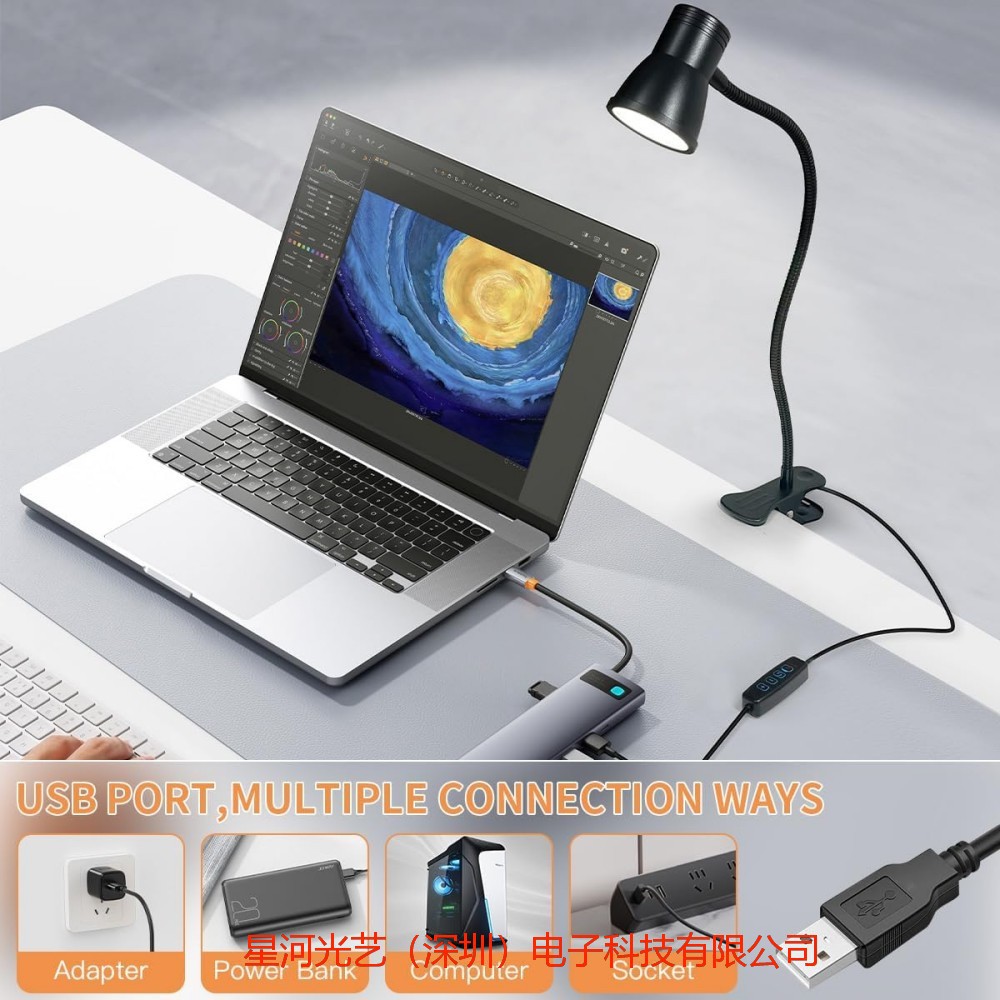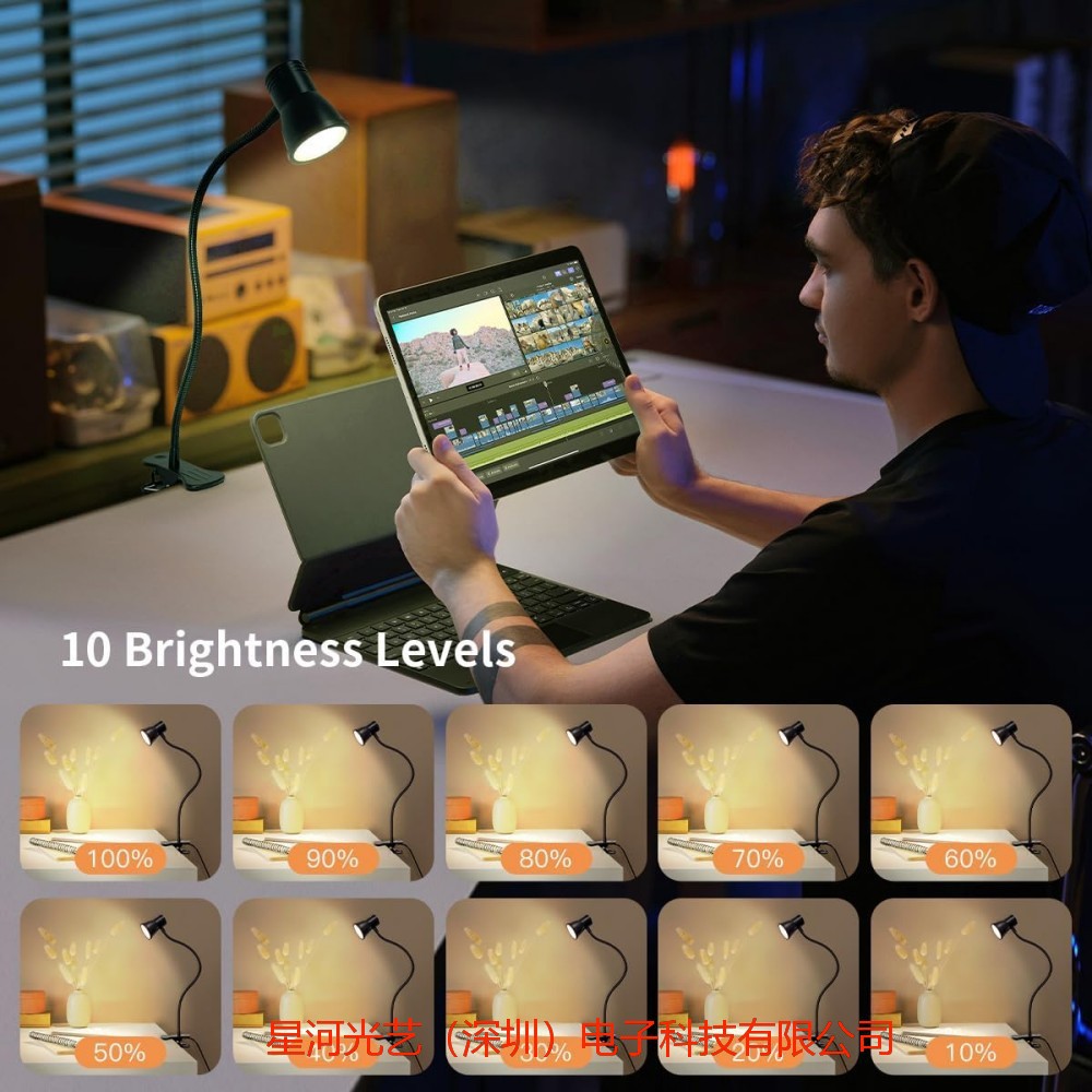 트럼펫 스타일 LED 클립 테이블 램프 눈 보호 학생 독서 매니큐어 얼굴 문신 눈썹 자화상 침실 머리맡 테이블 램프