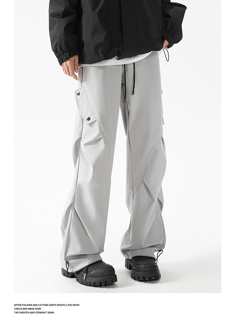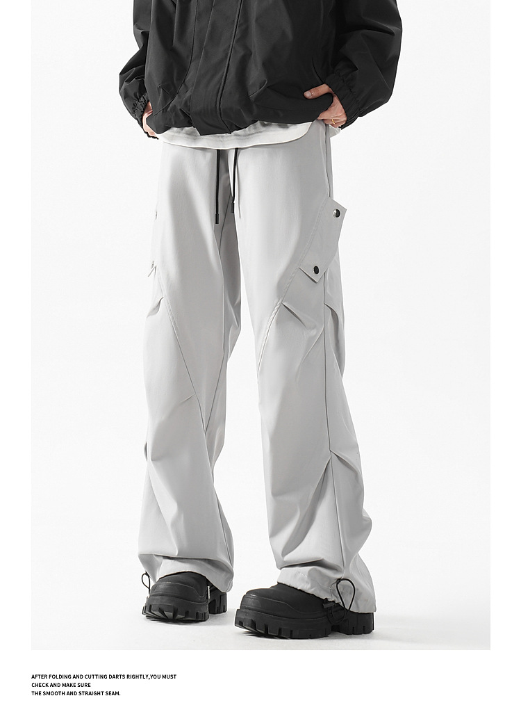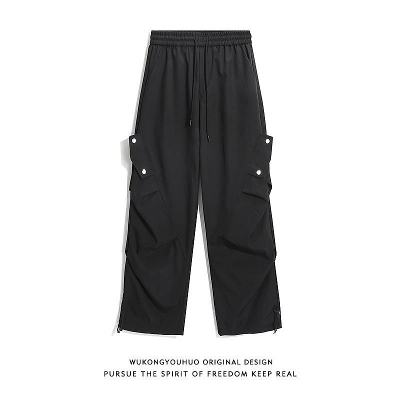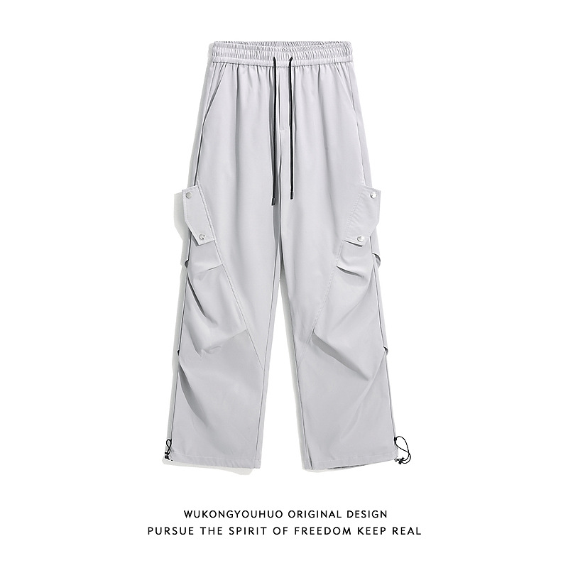 아메리칸 워크웨어 낙하산 바지 남성 여름 야외 기능성 속건성 충전 바지 하이 스트리트 와이드 레그 플리츠 캐주얼 바지