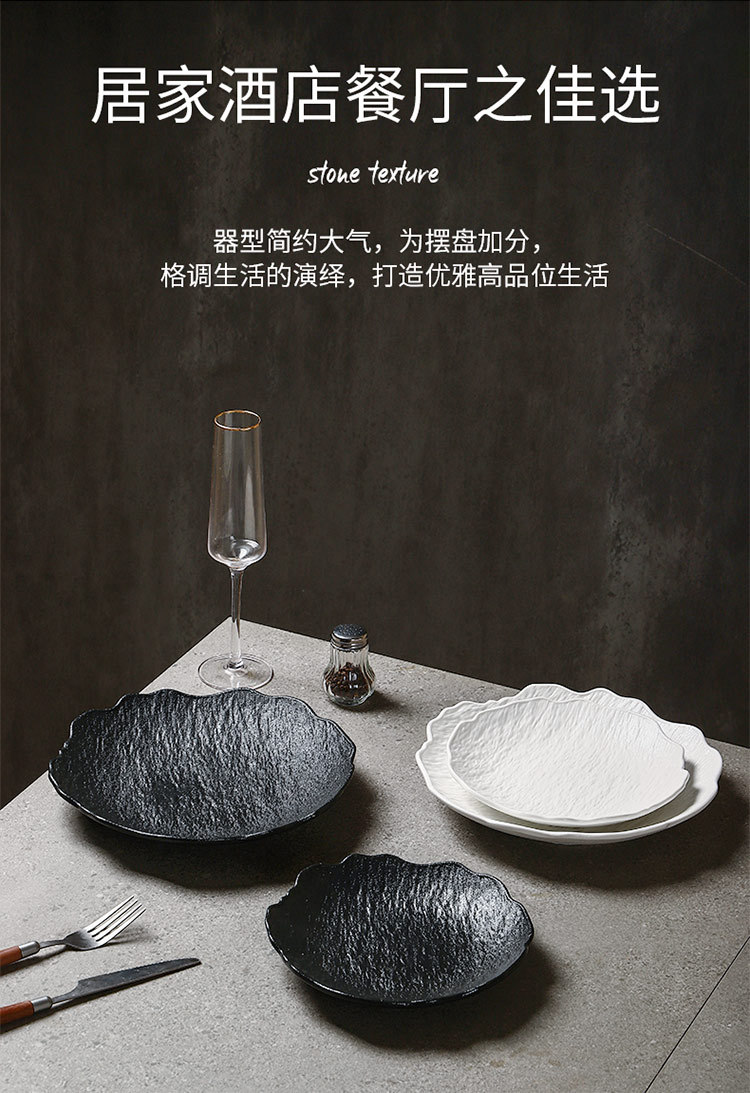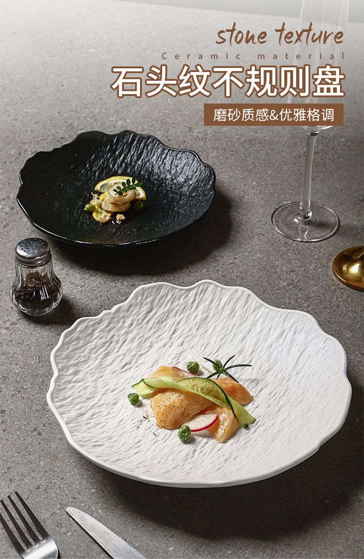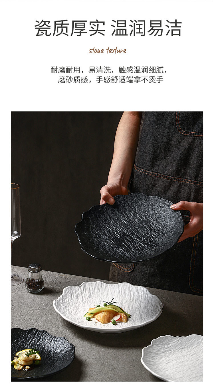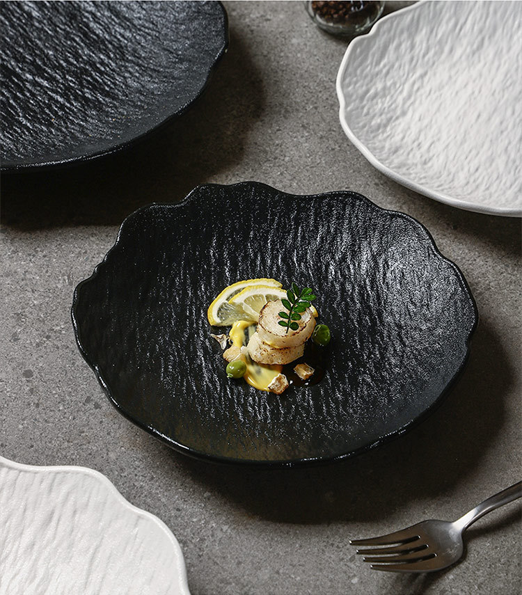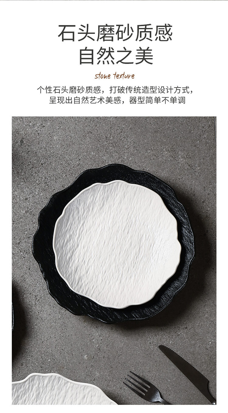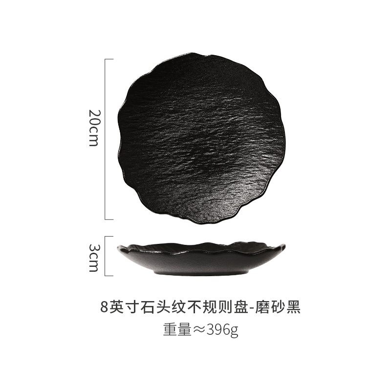 일본식 심플 8inch 특별한 모양의 가정용 깊은 접시 호텔 접시 고급 흑백 돌 무늬 세라믹 식기